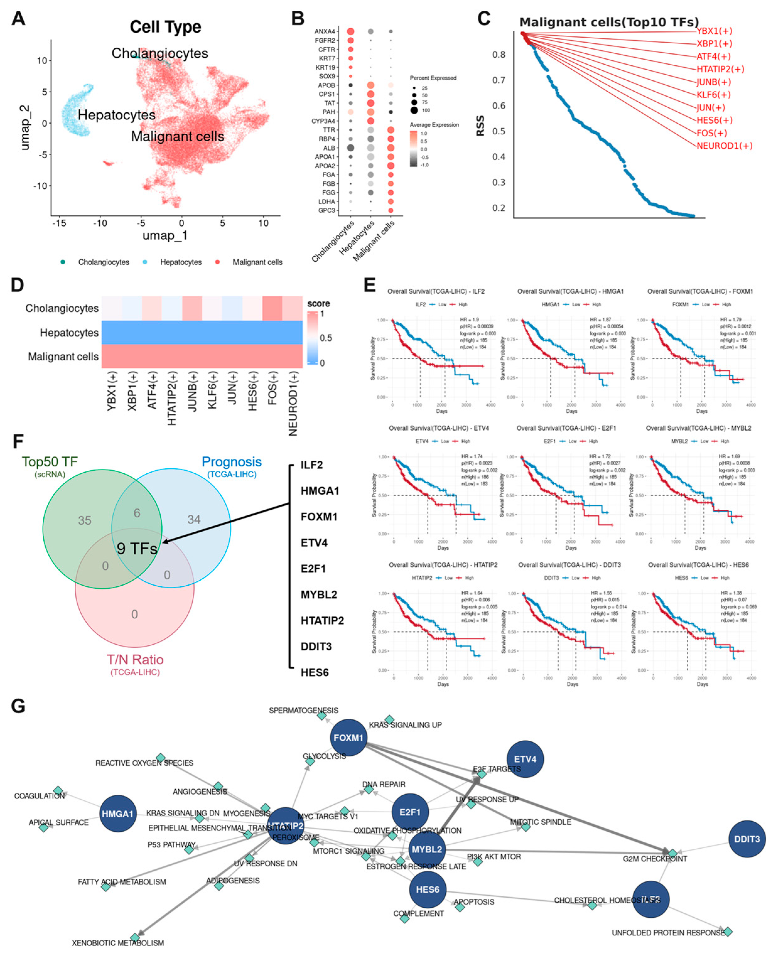 APA StyleLee, S. H., Ahn, J. W., Choi, W., Kim, J., Hwang, J. Y., Kim, J.-H., Kim, H., & Kwak, W. (2025). Transcription Factor Networks Drive Tumor Progression and Immune Microenvironment Remodeling in Hepatocellular Carcinoma. Cancers, 17(23), 3787. https://doi.org/10.3390/cancers17233787