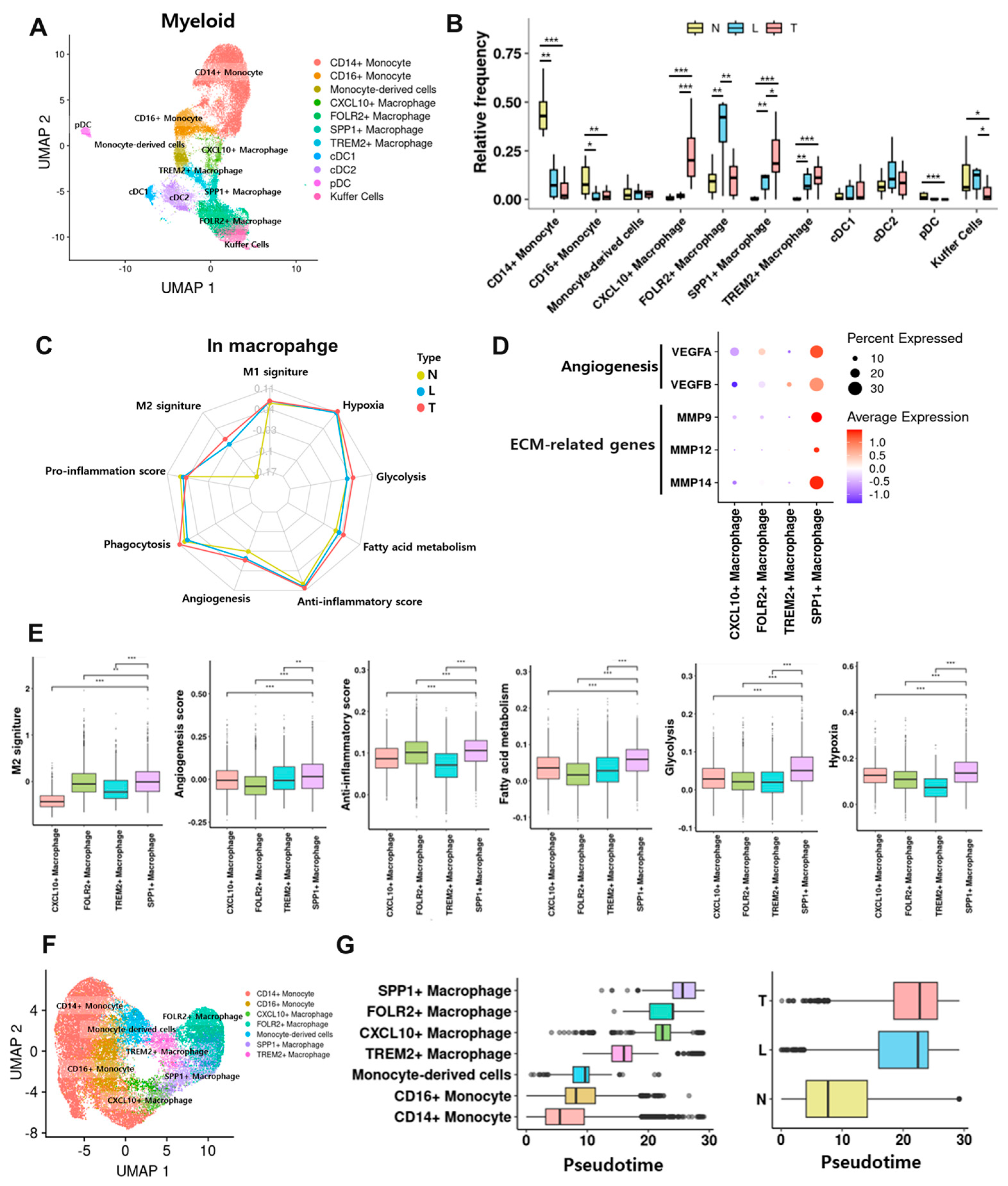 3.5. SPP1+ Macrophages Represent a Dominant Immunosuppressive Subset Within the Tumor Core