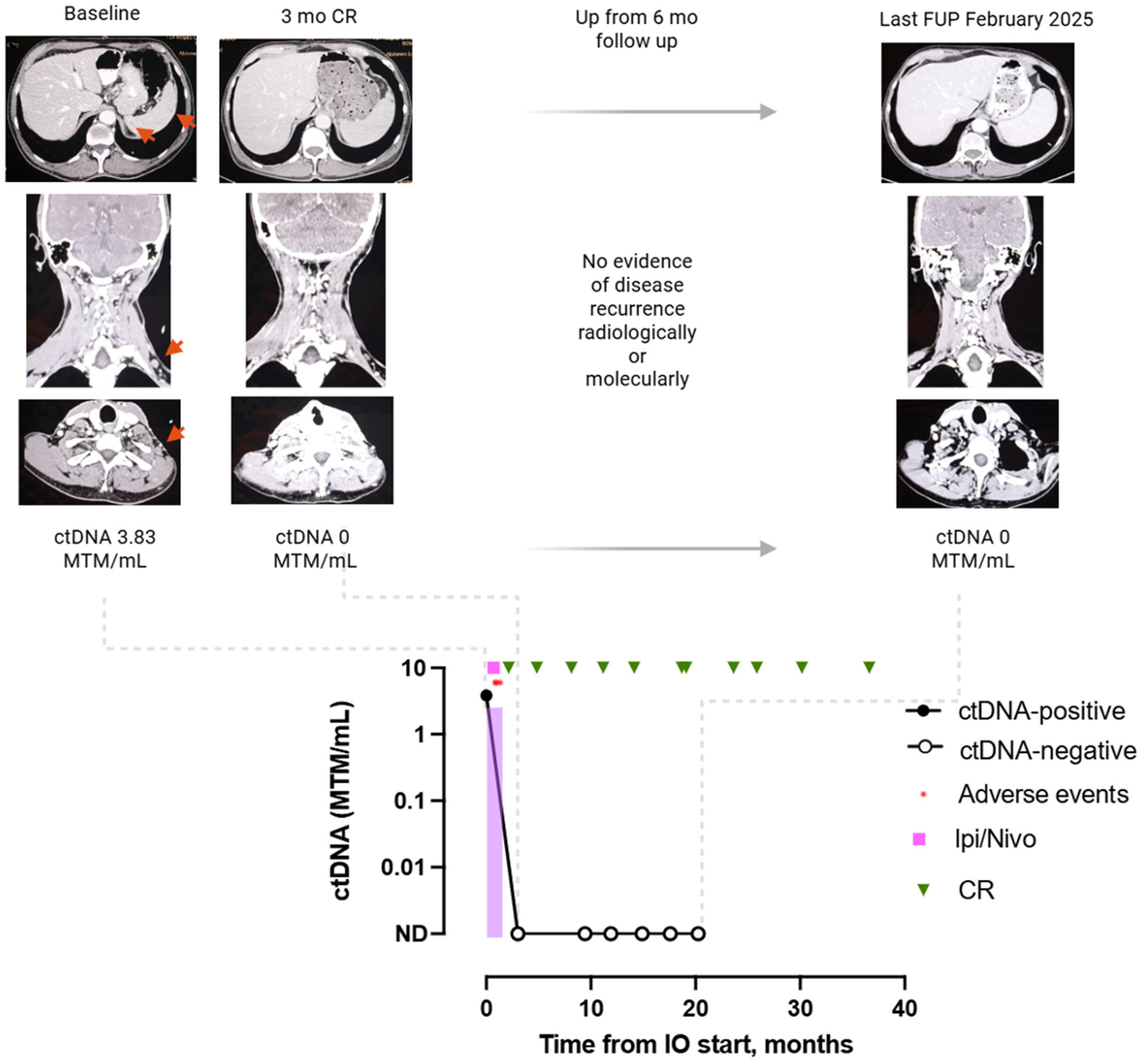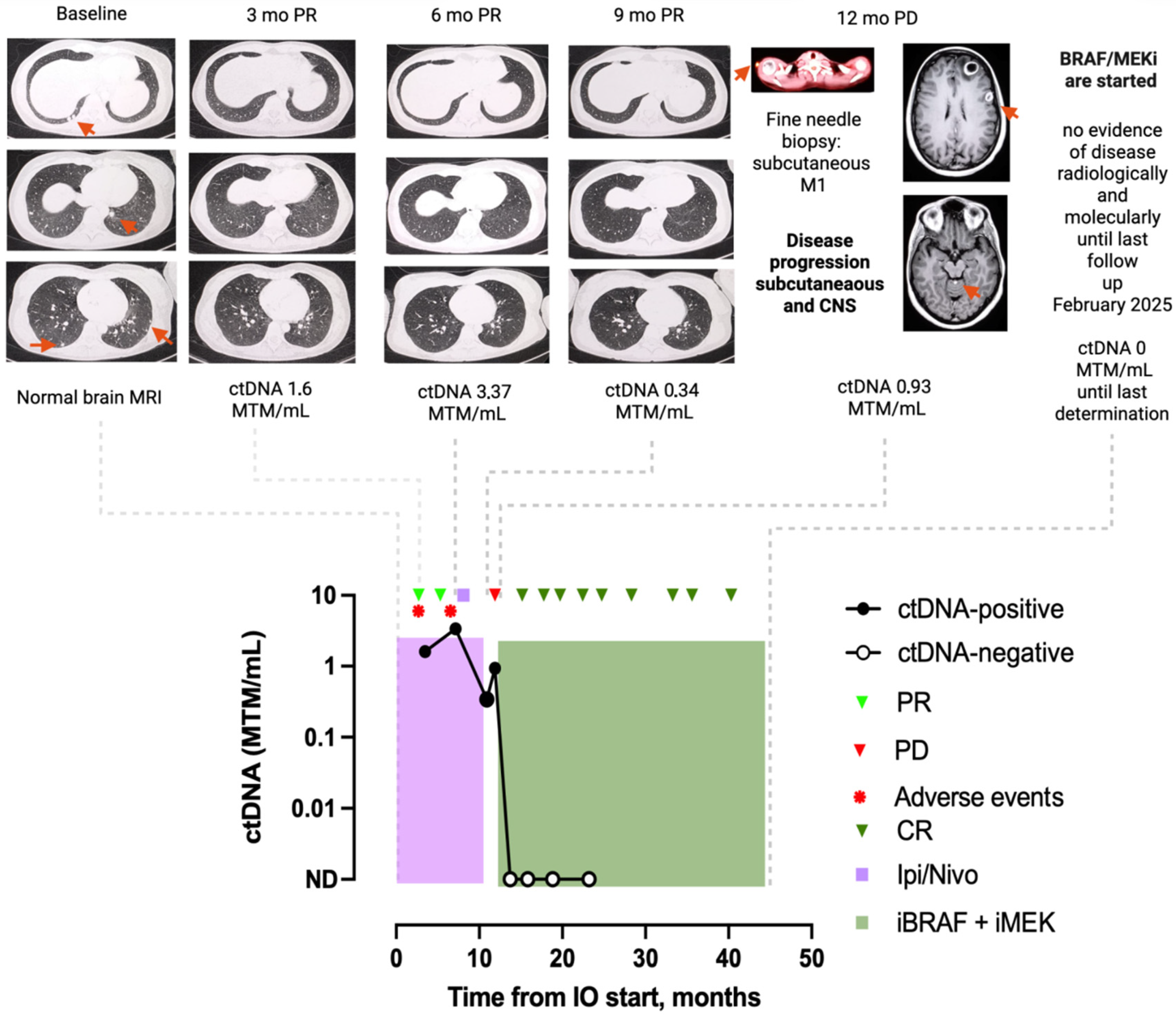 - Long, G.V.; Tang, H.; Desai, K.; Wang, S.; Del Vecchio, M.; Larkin, J.; Ritchings, C.; Huang, S.P.; Baden, J.; Balli, D.; et al. Pretreatment and on-treatment ctDNA and tissue biomarkers predict recurrence in patients with stage IIIB–D/IV melanoma treated with adjuvant immunotherapy: CheckMate 915. J. Immunother. Cancer 2025, 13, e012034. [Google Scholar] [CrossRef] [PubMed]