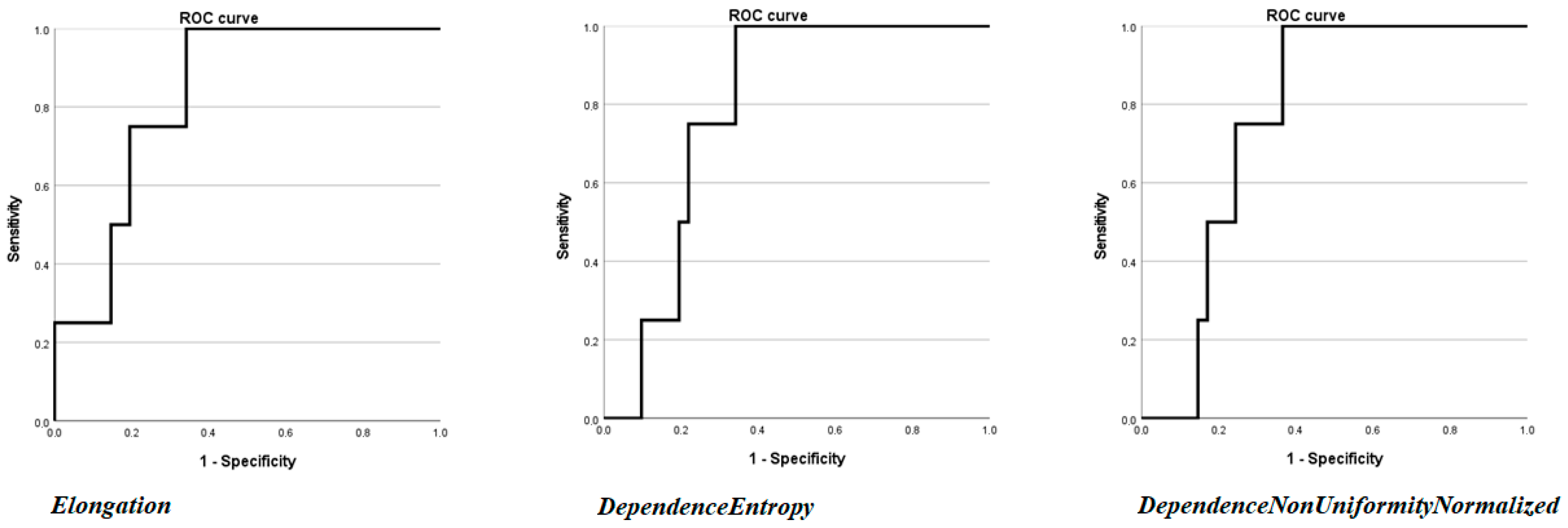 | DependenceEntropy (GLDM) | 5.3026 + 0.1856 | 4.516 + 0.7748 | 6.649 (1.53–82.35) | 0.784 (0.636–0892) | 91.11% | 0.049 |