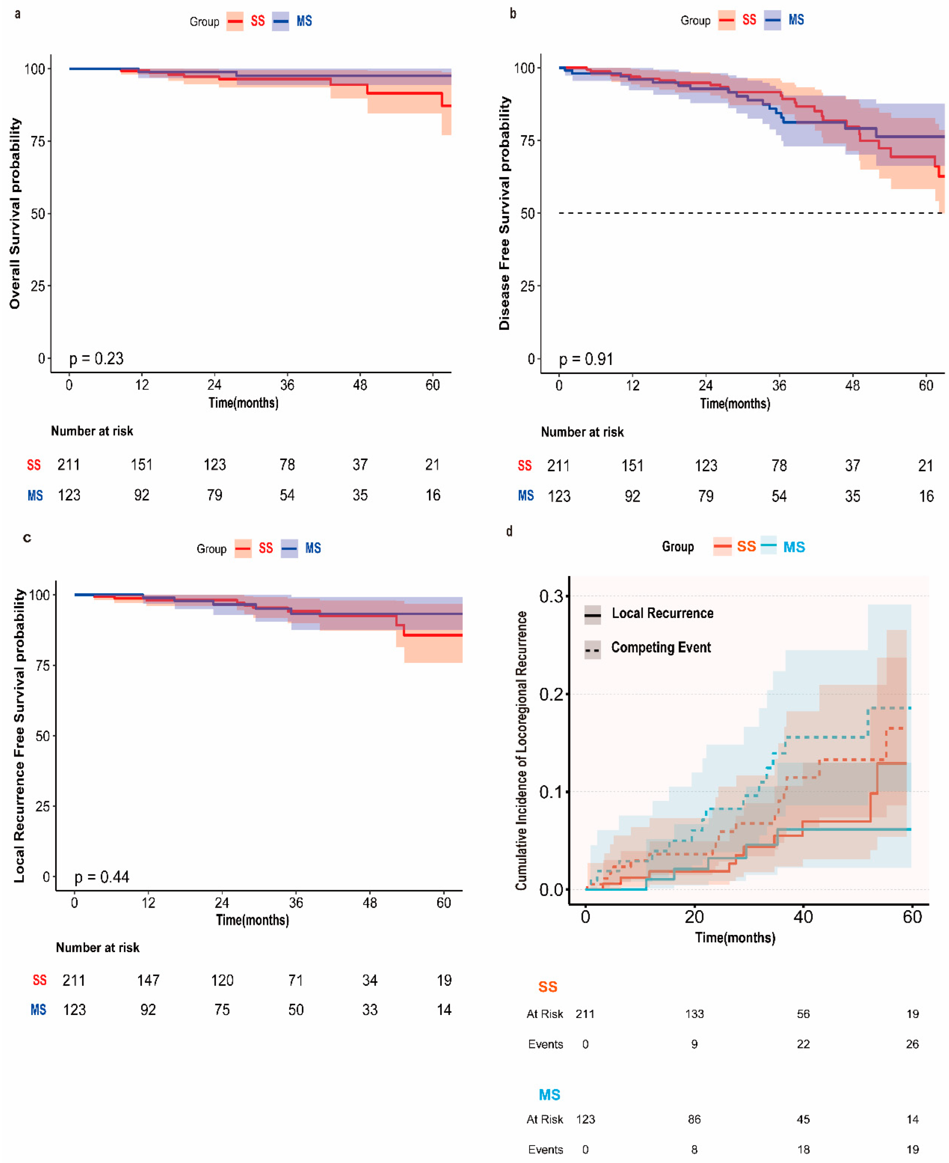 | Local Recurrence | MS | 1.04 (0.09–5.14) | 6.14 (2.21–12.96) | 93/50 | - | - |
