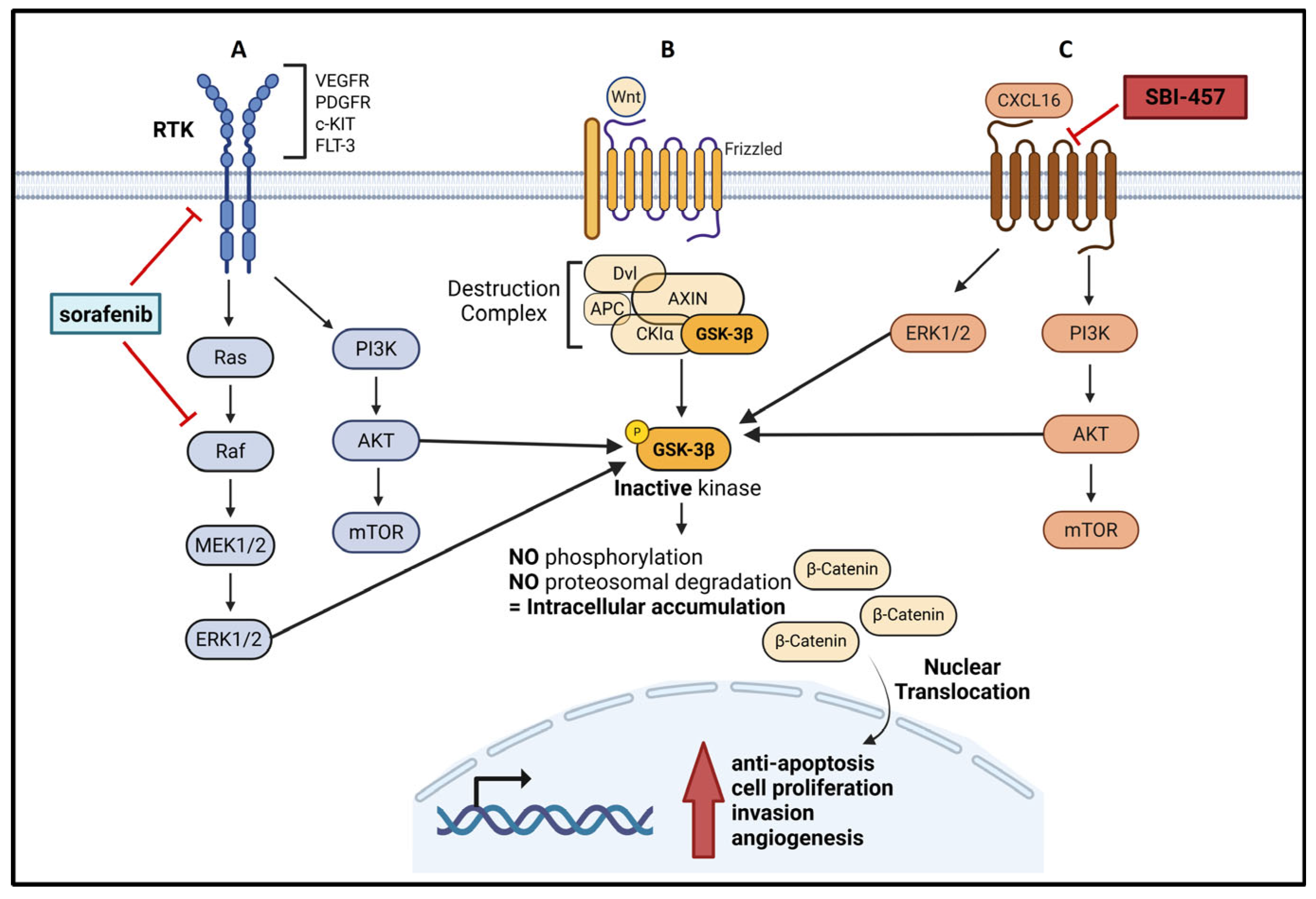 3.2. SBI-457 Attenuates Sorafenib-Induced β-Catenin Activation and Modulates GSK3β