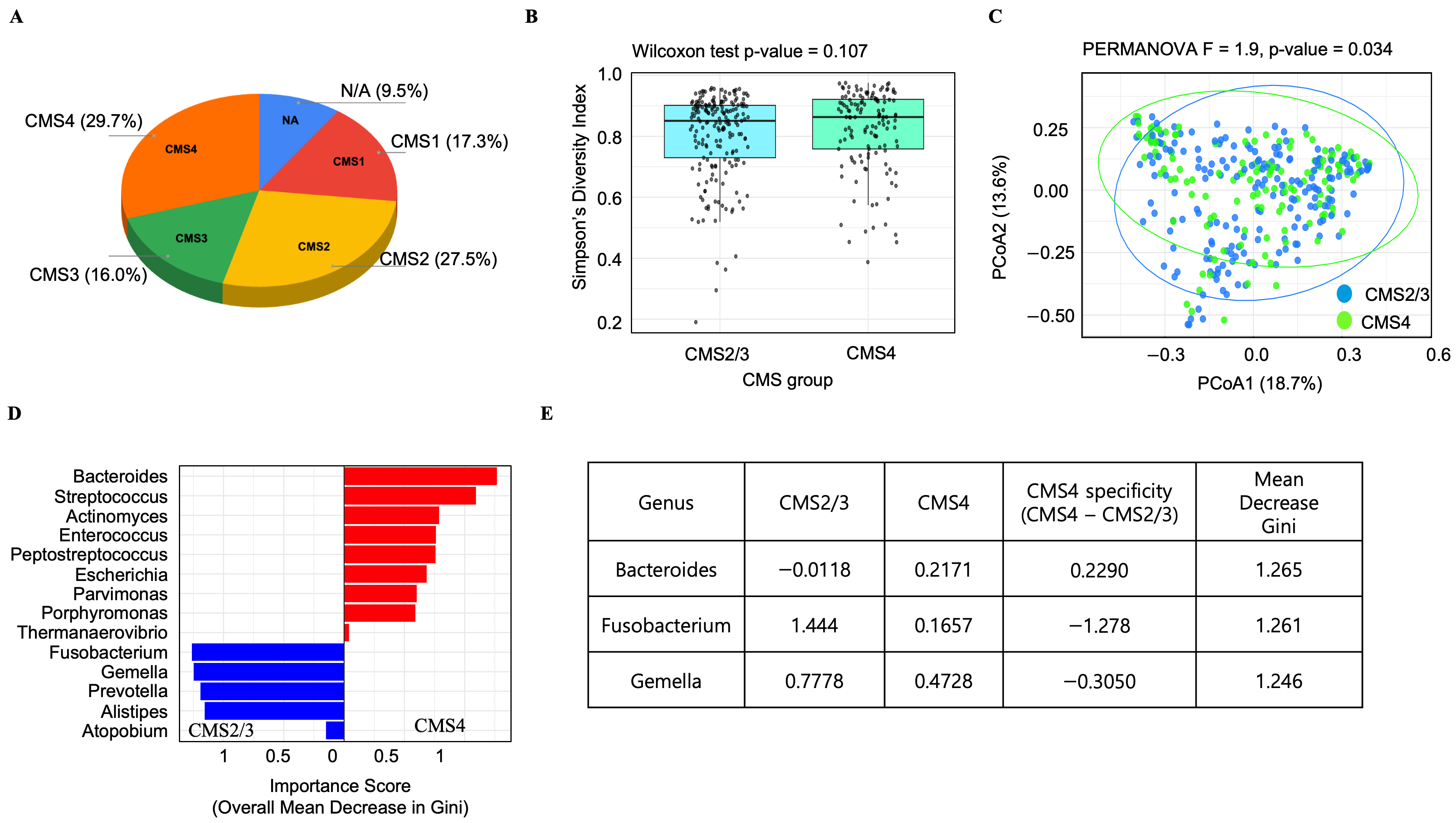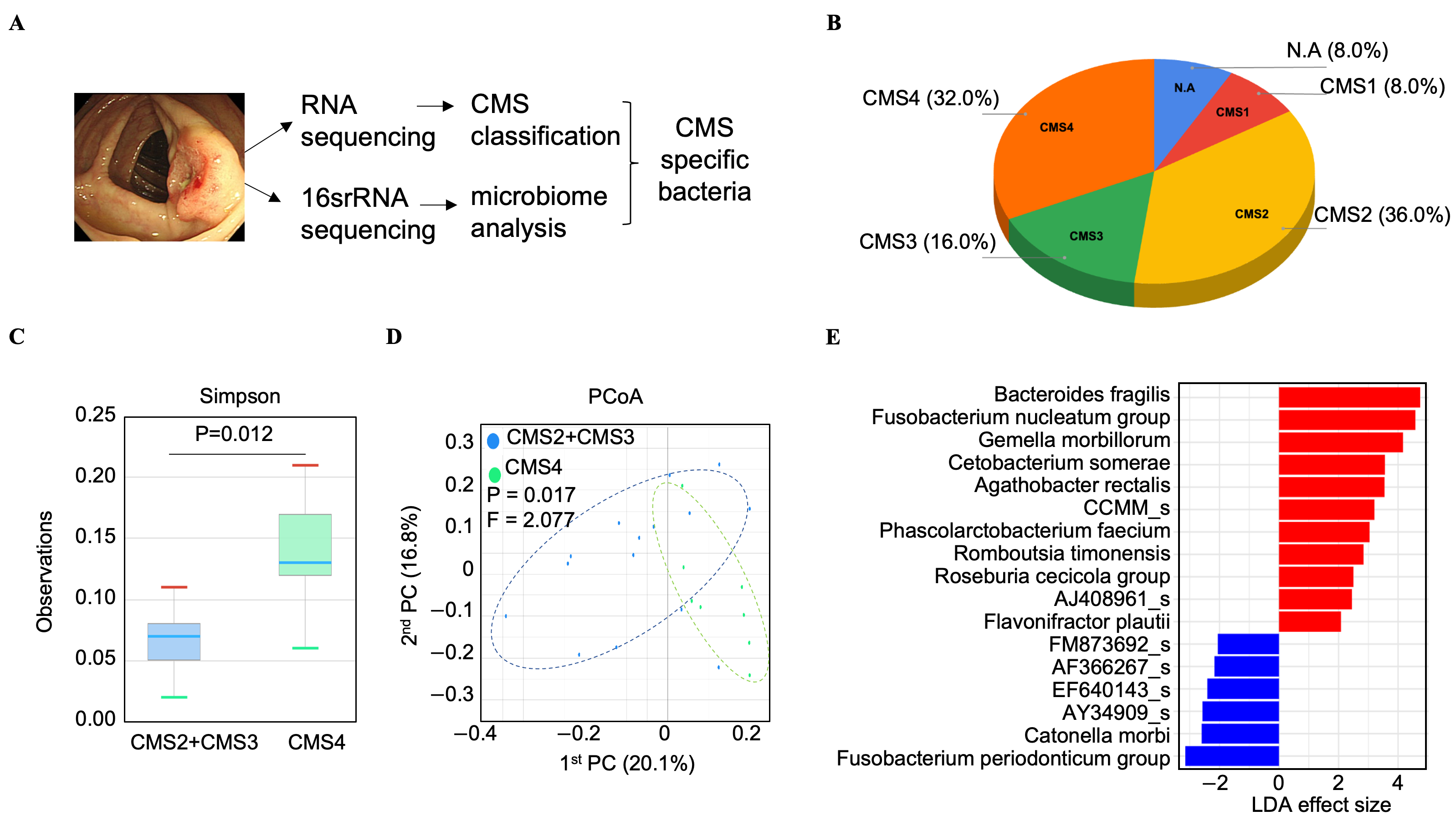 3.1. Bacteroides fragilis Is Significantly Enriched in the Microbiome of CMS4 Tumor Tissues