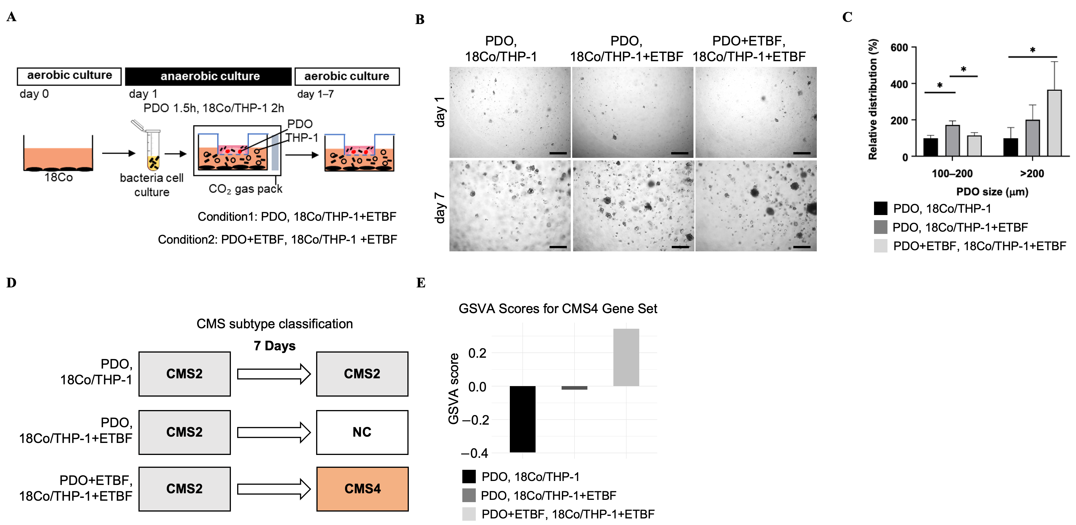 3.3. Bacteroides fragilis Enhances Growth and Changes the Gene Expression Profile into CMS4 in Co-Cultured Patient-Derived Organoids
