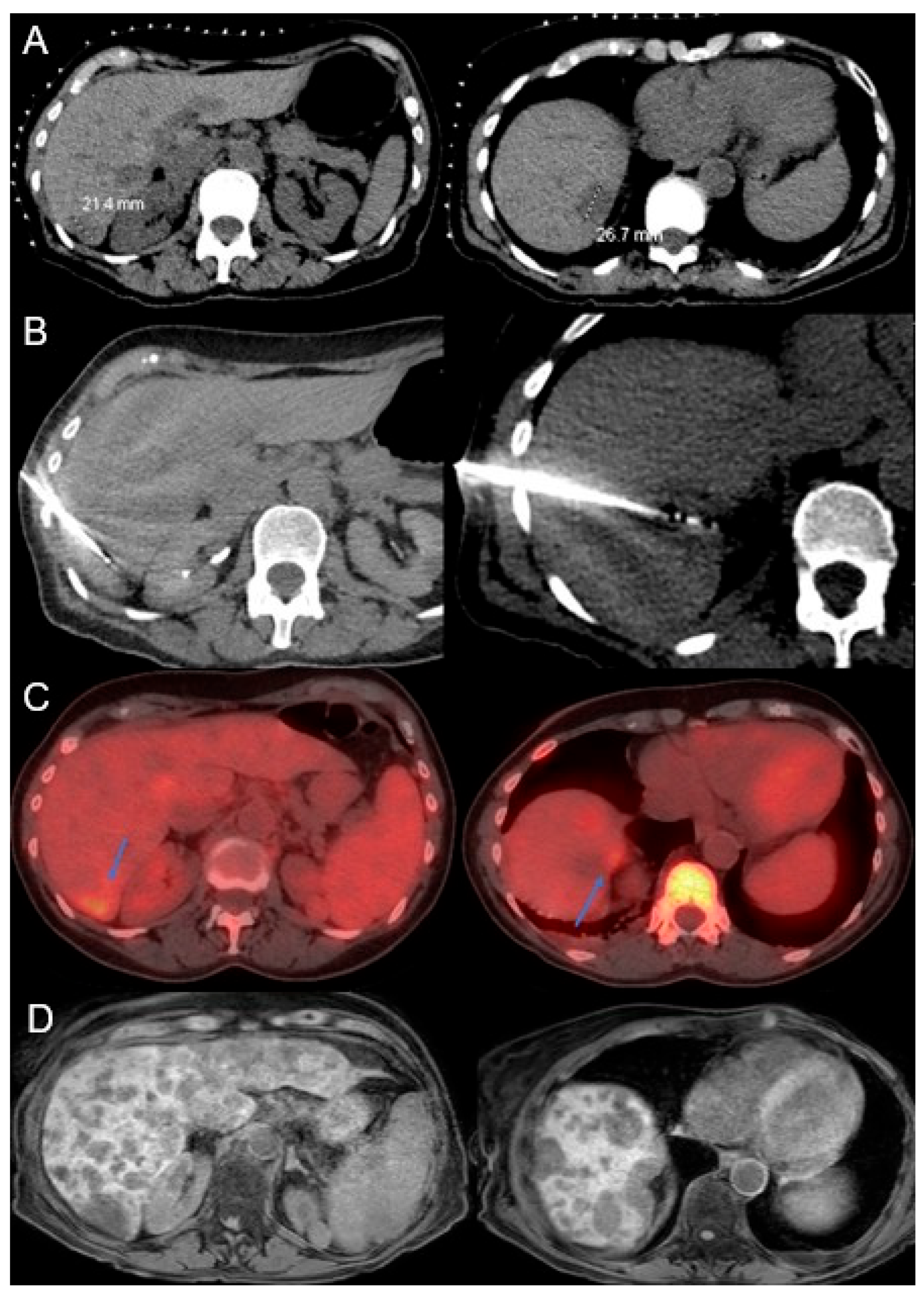 - Bai, X.M.; Yang, W.; Zhang, Z.Y.; Jiang, A.N.; Wu, W.; Lee, J.C.; Chen, M.-H.; Yan, K. Long-term outcomes and prognostic analysis of percutaneous radiofrequency ablation in liver metastasis from breast cancer. Int. J. Hyperth. 2019, 35, 183–193. [Google Scholar] [CrossRef]