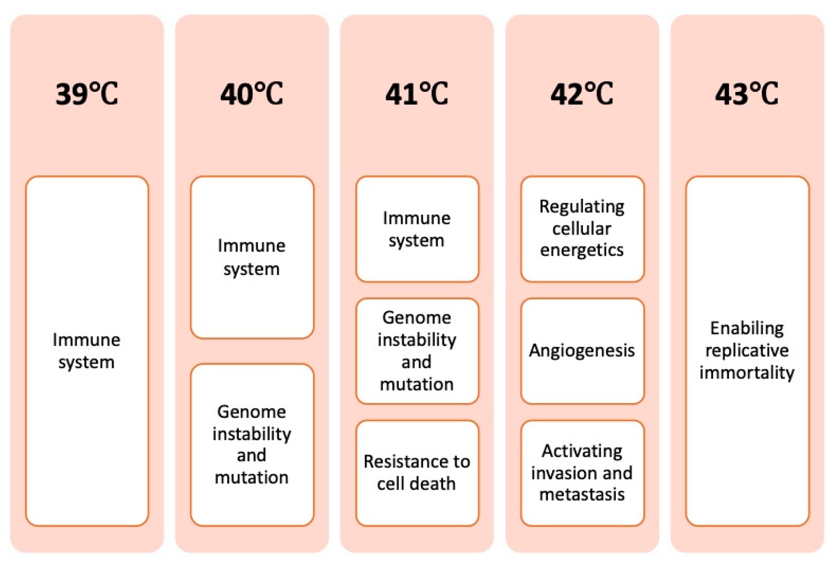 Gorbaslieva, I.; Quisenaerts, T.; Bogers, J.J.P.M.; Peeters, M.; Saldien, V.; Ysebaert, D. Temperature-Dependent Effects of Induced Hyperthermia, Including Whole-Body Hyperthermia, on the Hallmarks of Cancer: A Systematic Review. Cancers 2025, 17, 3824. https://doi.org/10.3390/cancers17233824
