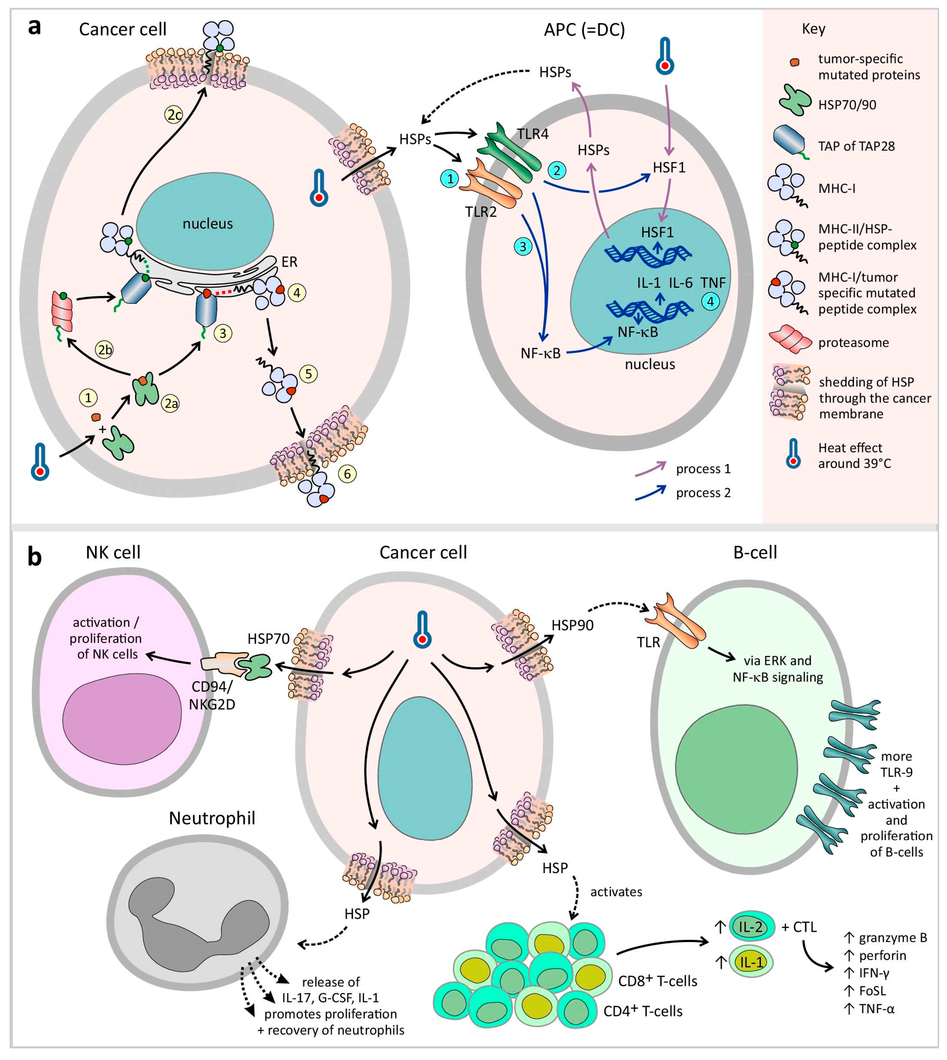 - Peer, A.J.; Grimm, M.J.; Zynda, E.R.; Repasky, E.A. Diverse Immune Mechanisms May Contribute to the Survival Benefit Seen in Cancer Patients Receiving Hyperthermia. Immunol. Res. 2010, 46, 137–154. [Google Scholar] [CrossRef]