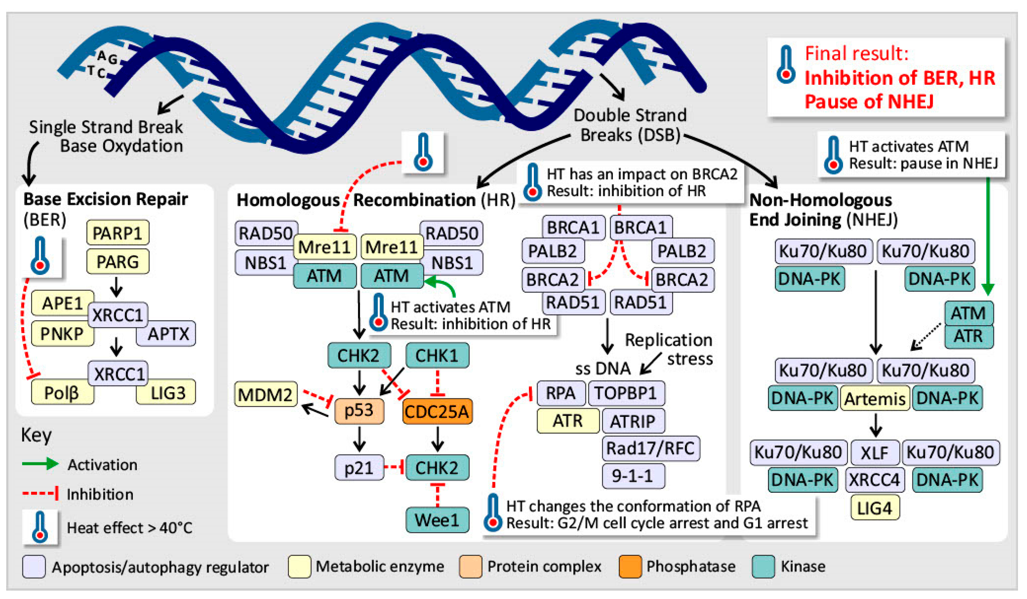 - Turner, T.; Caspari, T. When Heat Casts a Spell on the DNA Damage Checkpoints. Open Biol. 2014, 4, 140008. [Google Scholar] [CrossRef] [PubMed]