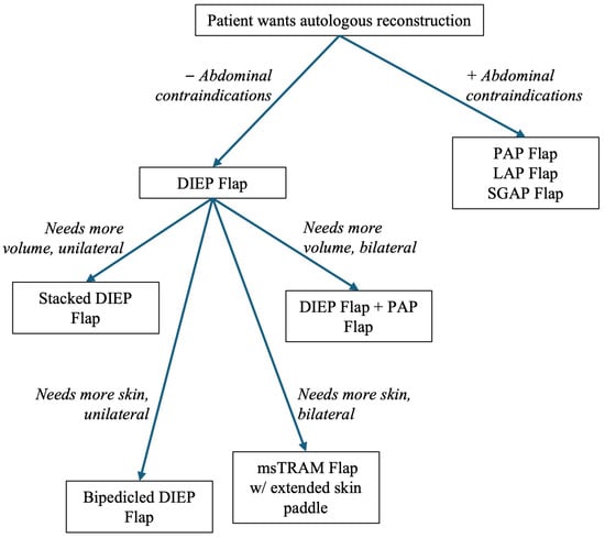 - Steele, T.N.; Teotia, S.S.; Haddock, N.T. Multi-Flap Microsurgical Autologous Breast Reconstruction. J. Clin. Med. 2024, 13, 5324. [Google Scholar] [CrossRef]