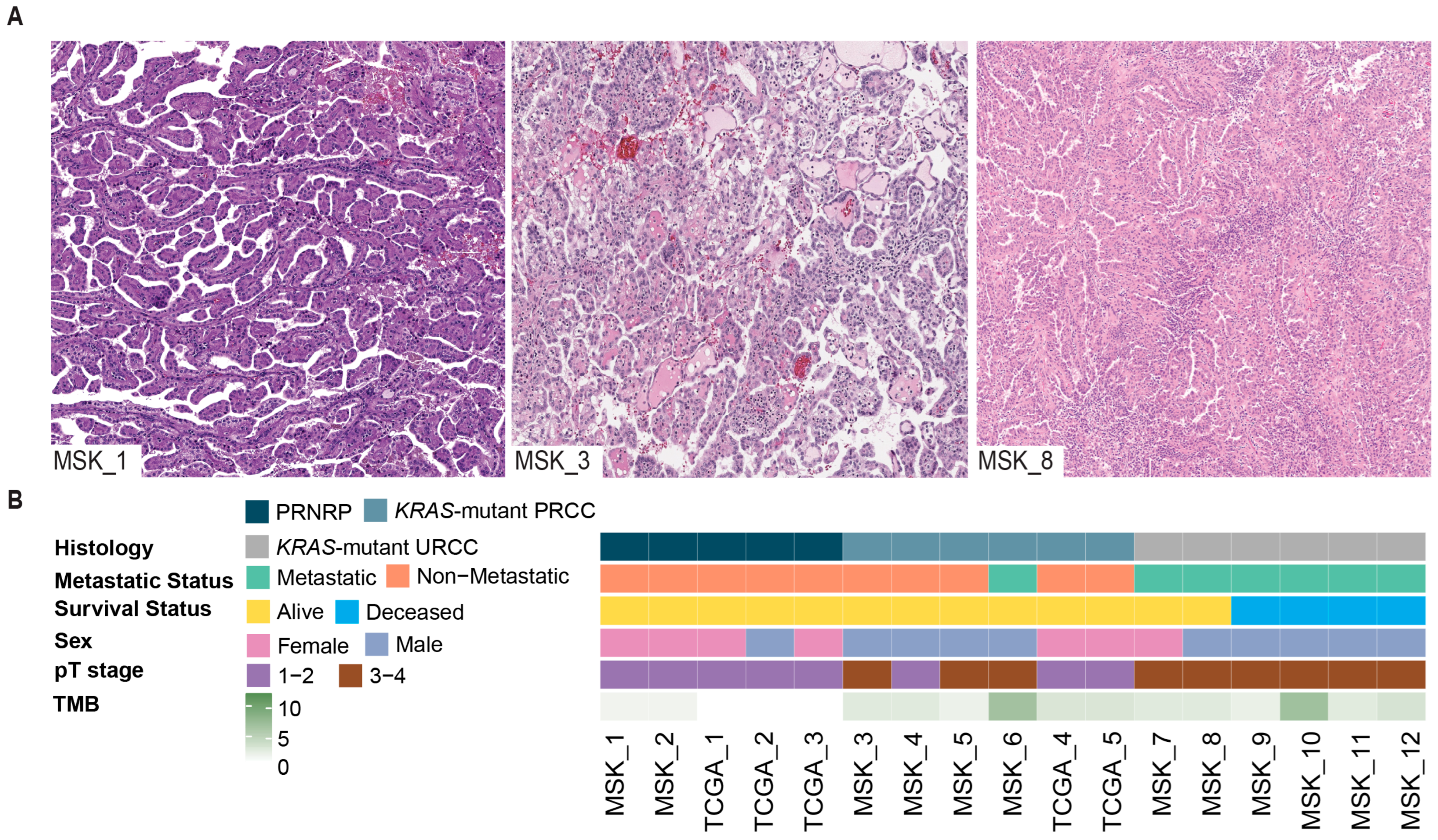 - Kim, S.S.; Cho, Y.M.; Kim, G.H.; Kee, K.H.; Kim, H.-S.; Kim, K.M.; Kim, J.-H.; Choi, C. Recurrent KRAS Mutations Identified in Papillary Renal Neoplasm with Reverse Polarity—A Comparative Study with Papillary Renal Cell Carcinoma. Mod. Pathol. 2020, 33, 690–699. [Google Scholar] [CrossRef]