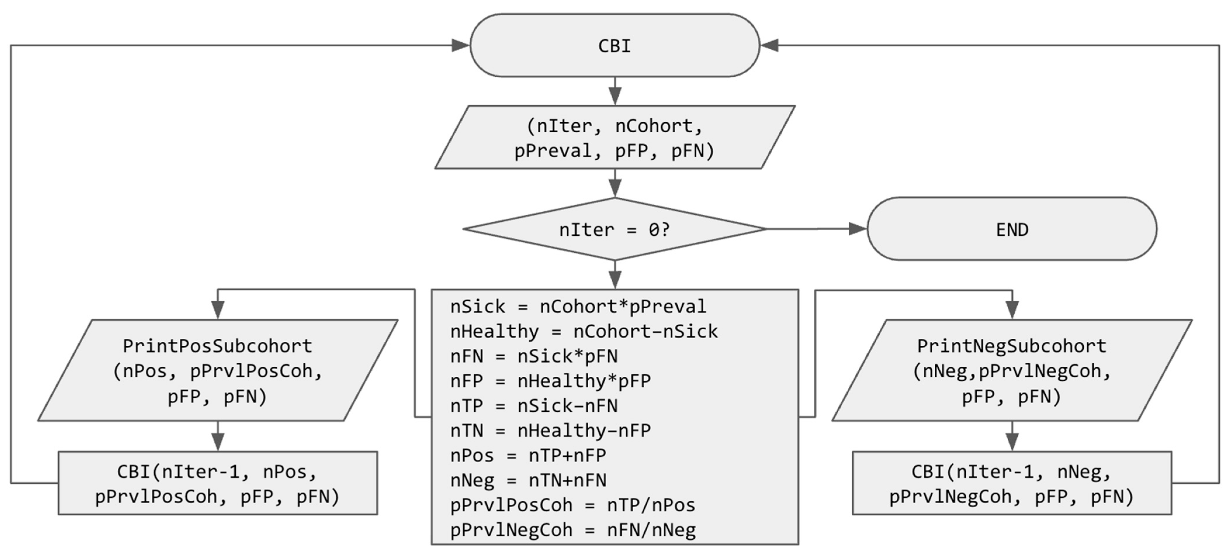 | nHealthy = nCohort − nSick | (100,000 − 19.6 = 99980.4) |