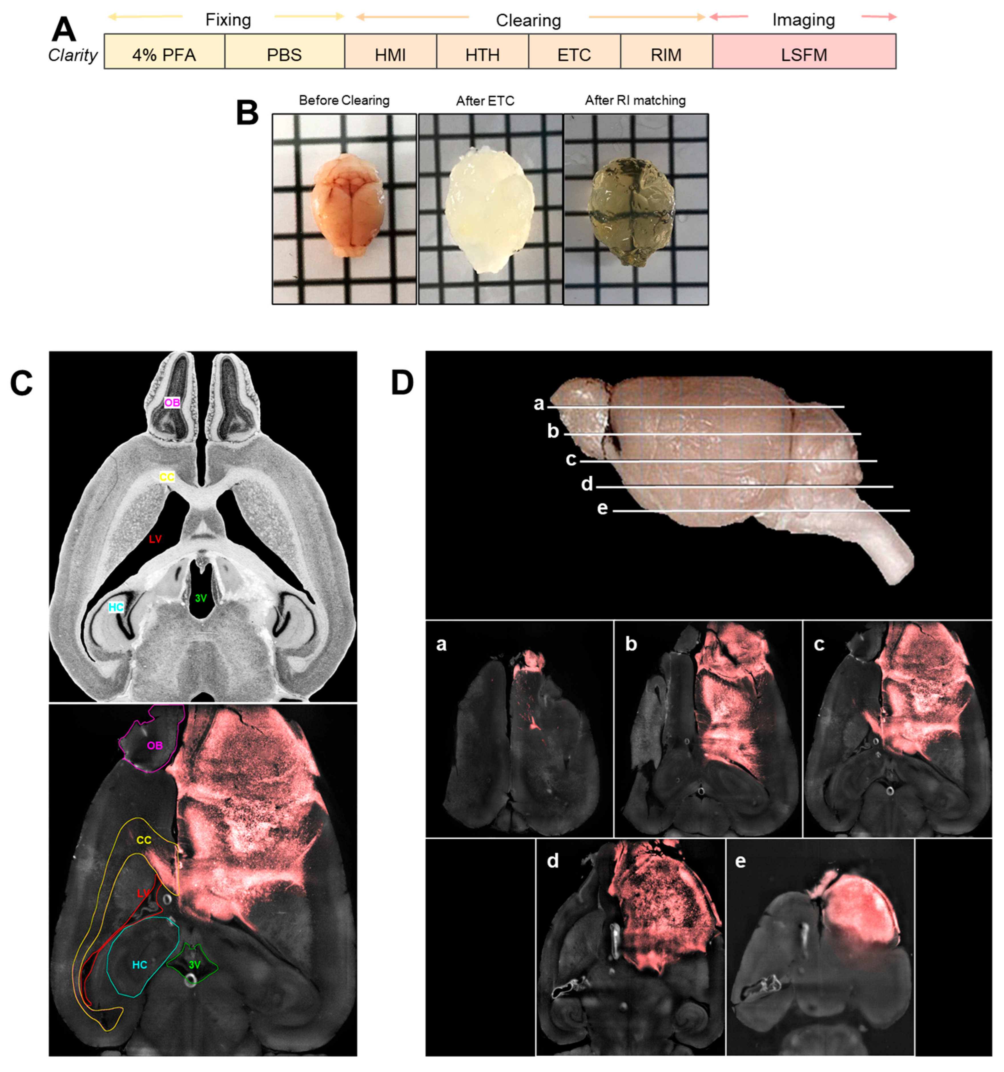 - Chung, K.; Wallace, J.; Kim, S.-Y.; Kalyanasundaram, S.; Andalman, A.S.; Davidson, T.J.; Mirzabekov, J.J.; Zalocusky, K.A.; Mattis, J.; Denisin, A.K.; et al. Structural and molecular interrogation of intact biological systems. Nature 2013, 497, 332–337. [Google Scholar] [CrossRef] [PubMed]
