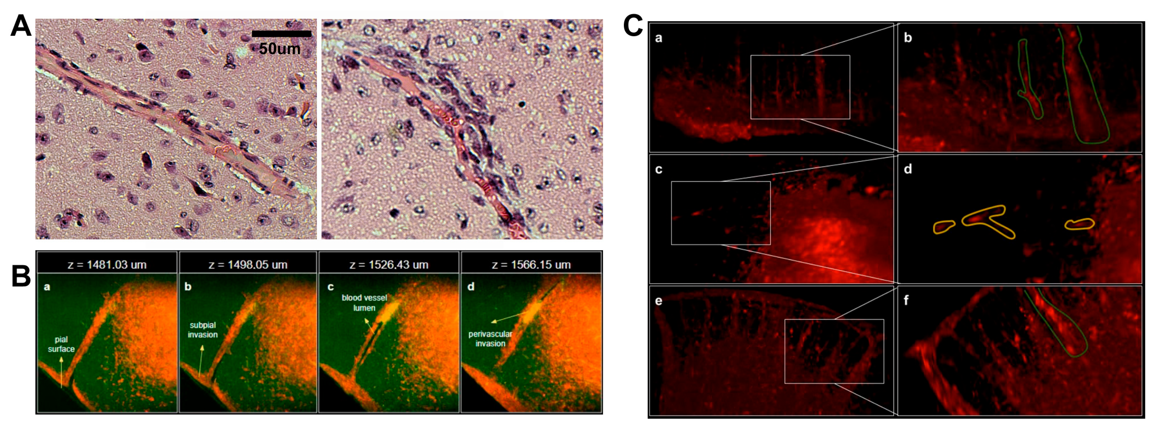 3.3. Multimodal Invasion Patterns Captured by 3D Imaging of Cleared Brains