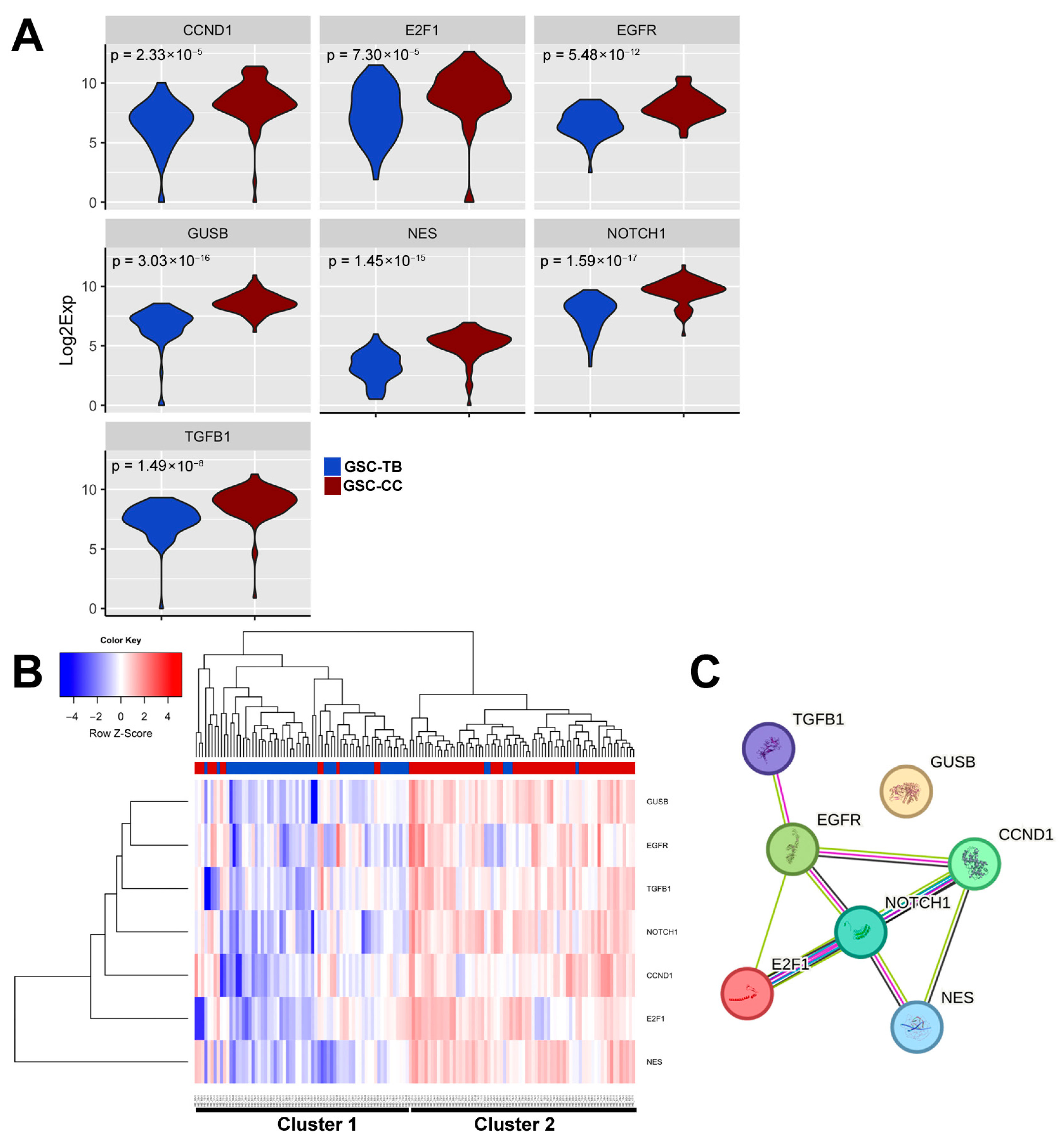 3.5. Differential Expression Genes (DEG) Reveal a Corpus Callosum Invasion Signature in Glioma Stem Cells