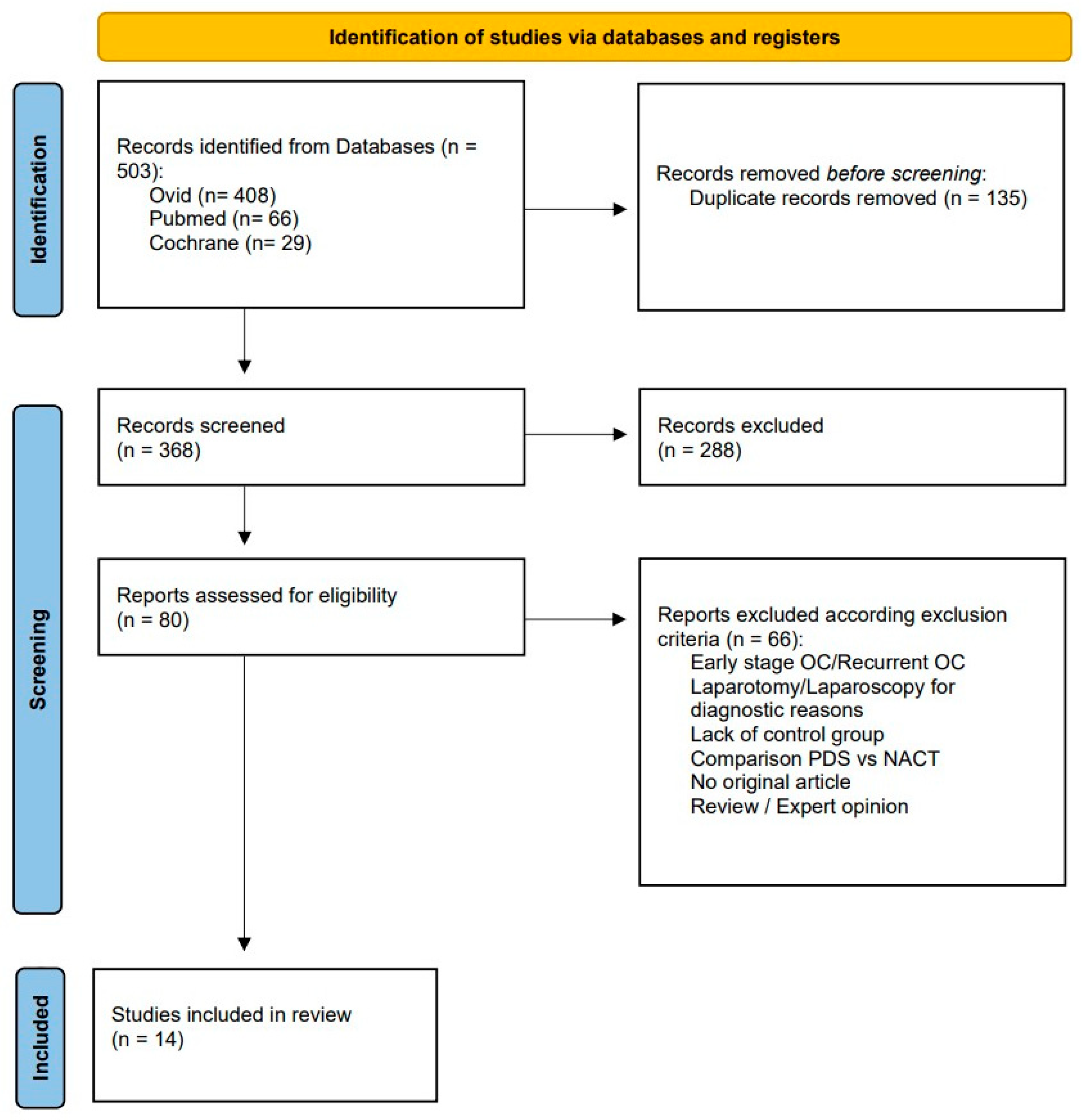 - Achen, G.; Koual, M.; Bentivegna, E.; Fournier, L.; Nguyen Xuan, H.T.; Delanoy, N.; Bats, A.S.; Azais, H. Epithelial ovarian cancers and minimally invasive cytoreductive surgery after neoadjuvant chemotherapy: A systematic review. Gynecol. Obstet. Fertil. Senol. 2021, 49, 736–743. [Google Scholar] [CrossRef] [PubMed]
