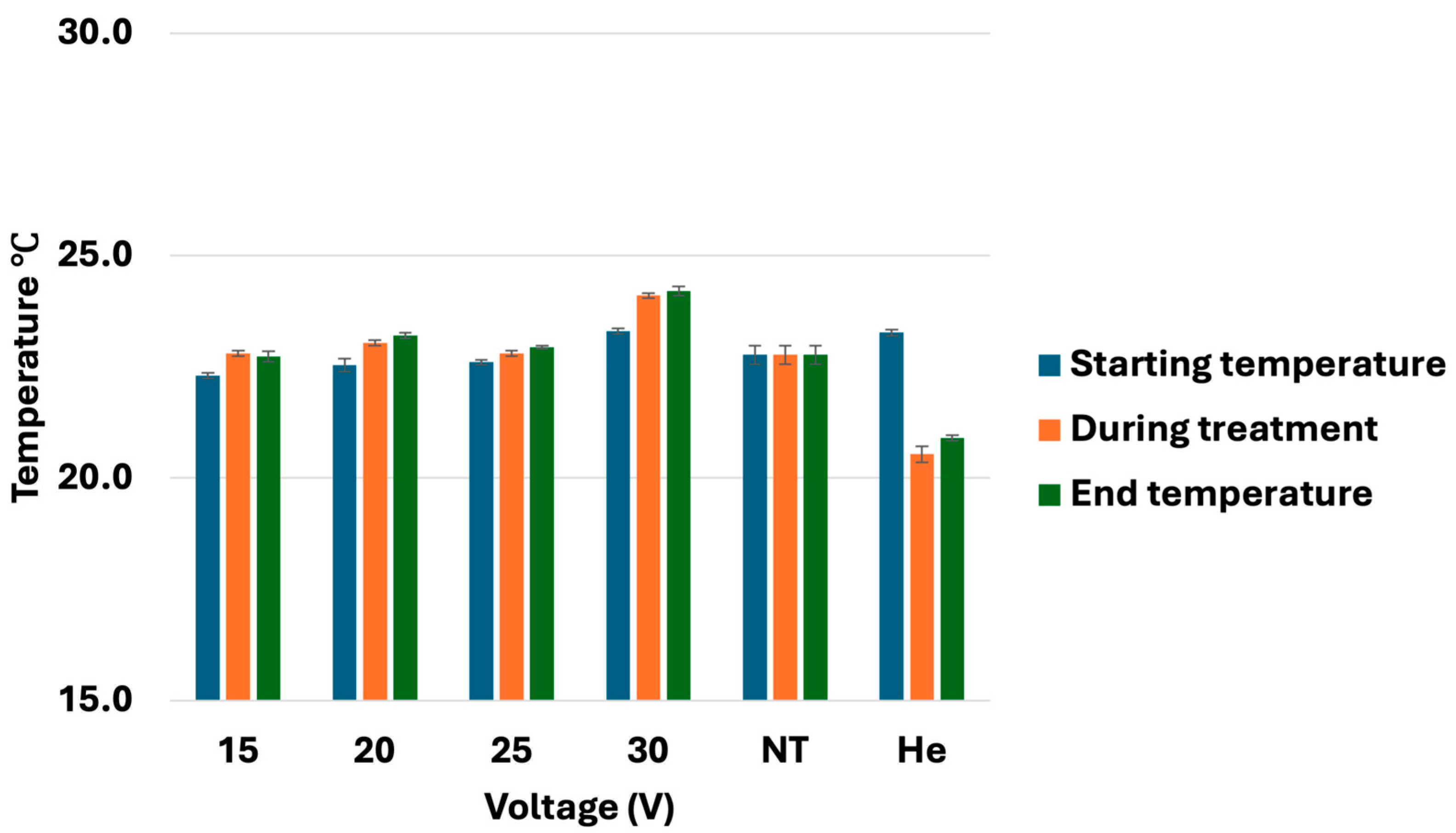 3.2. Temperature Monitoring During CHCP Treatment