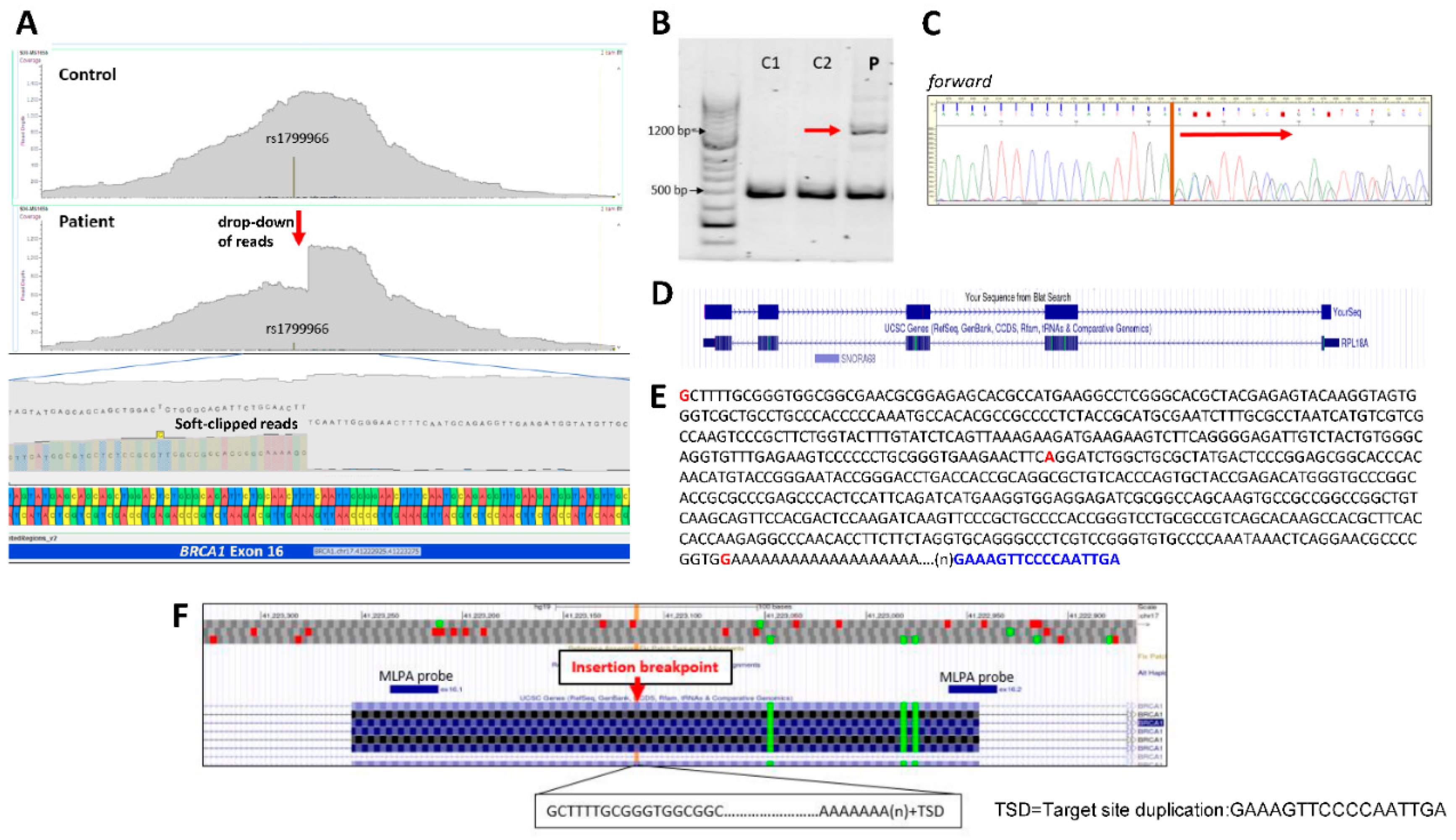 3.1. Discovery of a Long Insertion in BRCA1 Coding Sequence