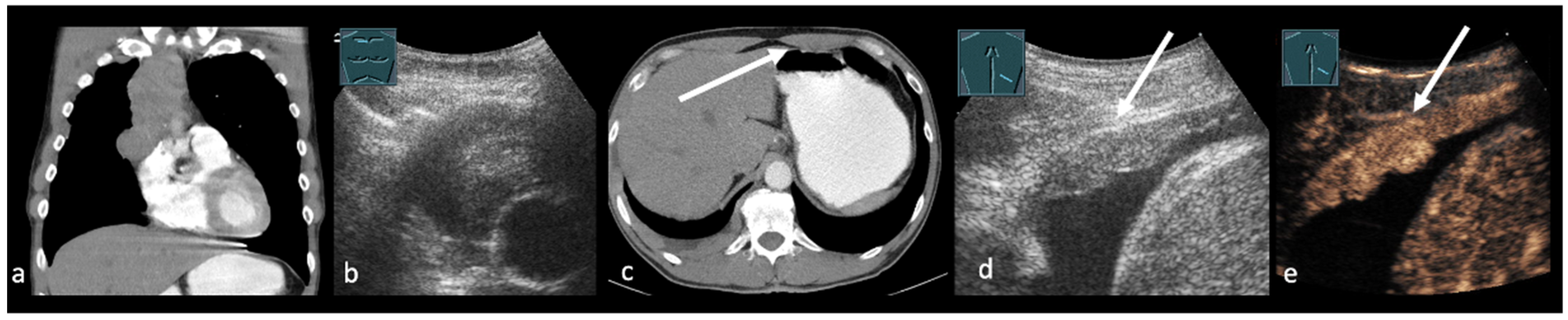 - Dietrich, C.F.; Nolsøe, C.P.; Barr, R.G.; Berzigotti, A.; Burns, P.N.; Cantisani, V.; Chammas, M.C.; Chaubal, N.; Choi, B.I.; Clevert, D.A.; et al. Guidelines and Good Clinical Practice Recommendations for Contrast-Enhanced Ultrasound (CEUS) in the Liver-Update 2020 WFUMB in Cooperation with EFSUMB, AFSUMB, AIUM, and FLAUS. Ultrasound Med. Biol. 2020, 46, 2579–2604. [Google Scholar] [CrossRef]