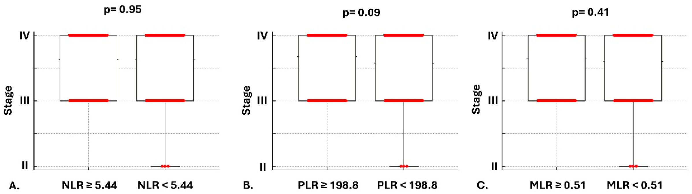 - Sylman, J.L.; Mitrugno, A.; Atallah, M.; Tormoen, G.W.; Shatzel, J.J.; Tassi Yunga, S.; Wagner, T.H.; Leppert, J.T.; Mallick, P.; McCarty, O.J.T. The Predictive Value of Inflammation-Related Peripheral Blood Measurements in Cancer Staging and Prognosis. Front. Oncol. 2018, 8, 78. [Google Scholar] [CrossRef] [PubMed]