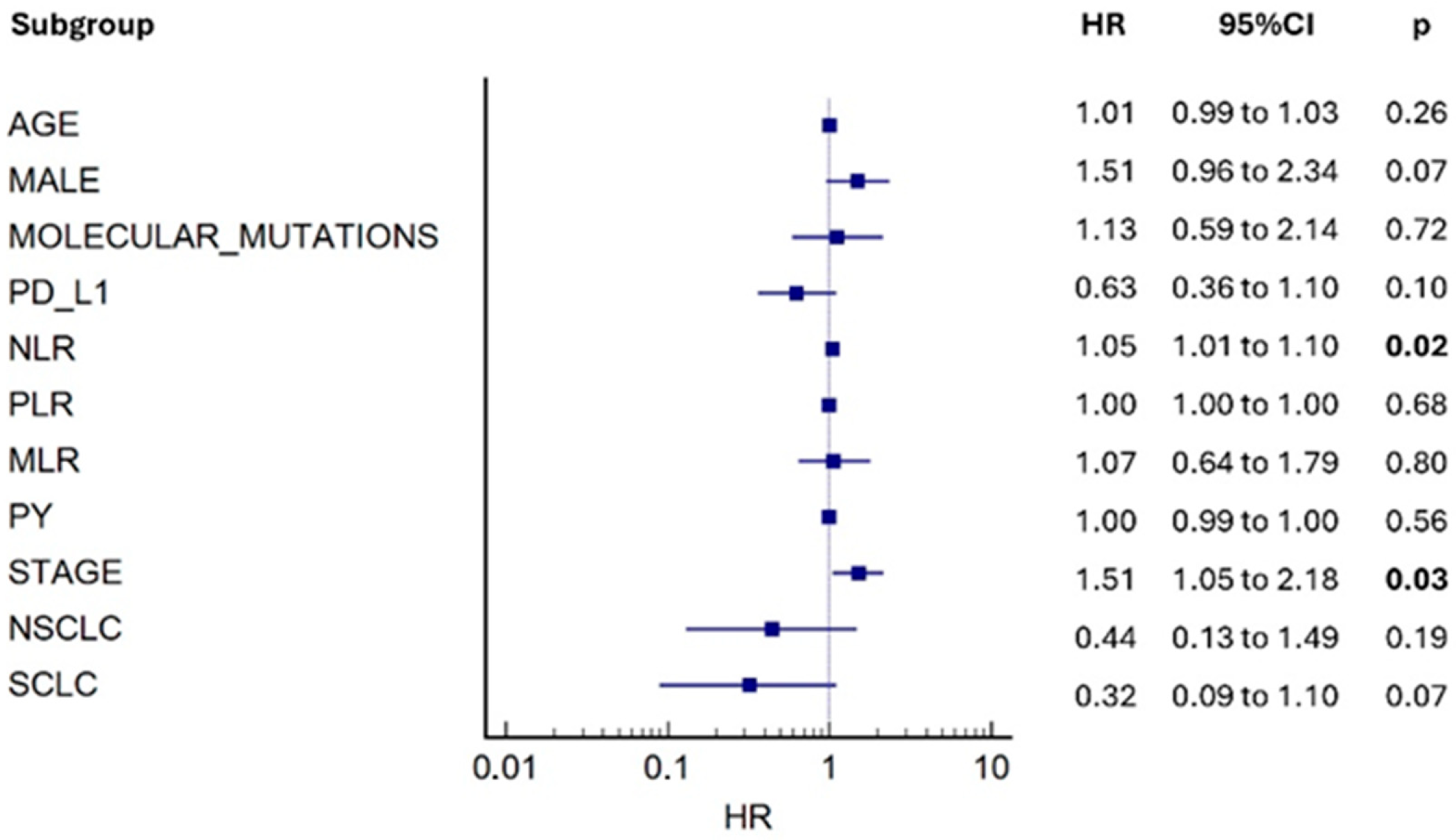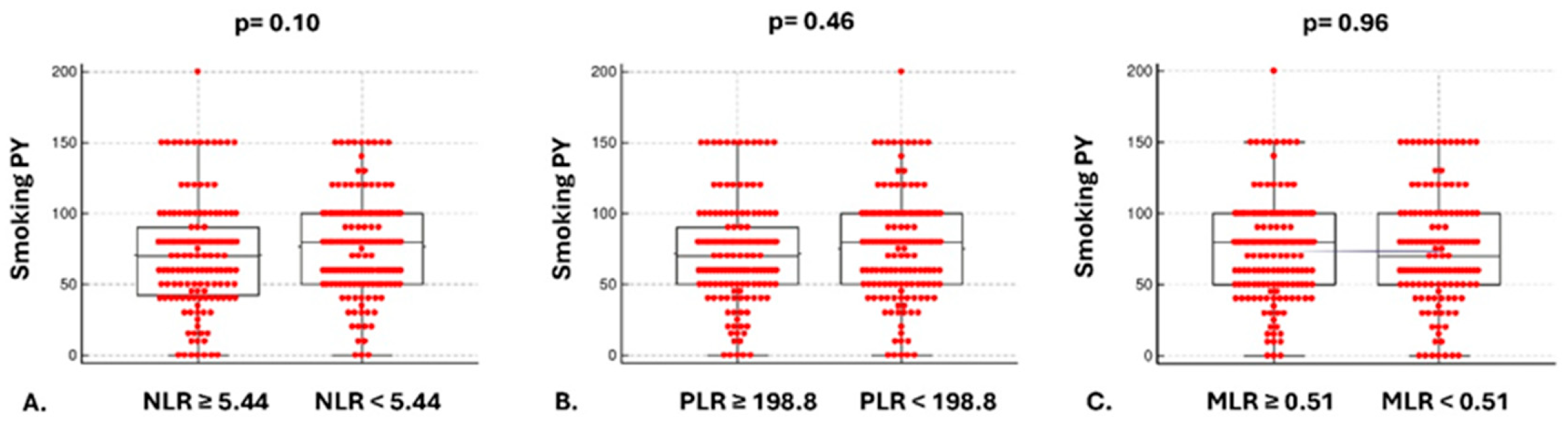 - Platini, H.; Ferdinand, E.; Kohar, K.; Prayogo, S.A.; Amirah, S.; Komariah, M.; Maulana, S. Neutrophil-to-Lymphocyte Ratio and Platelet-to-Lymphocyte Ratio as Prognostic Markers for Advanced Non-Small-Cell Lung Cancer Treated with Immunotherapy: A Systematic Review and Meta-Analysis. Medicina 2022, 58, 1069. [Google Scholar] [CrossRef]