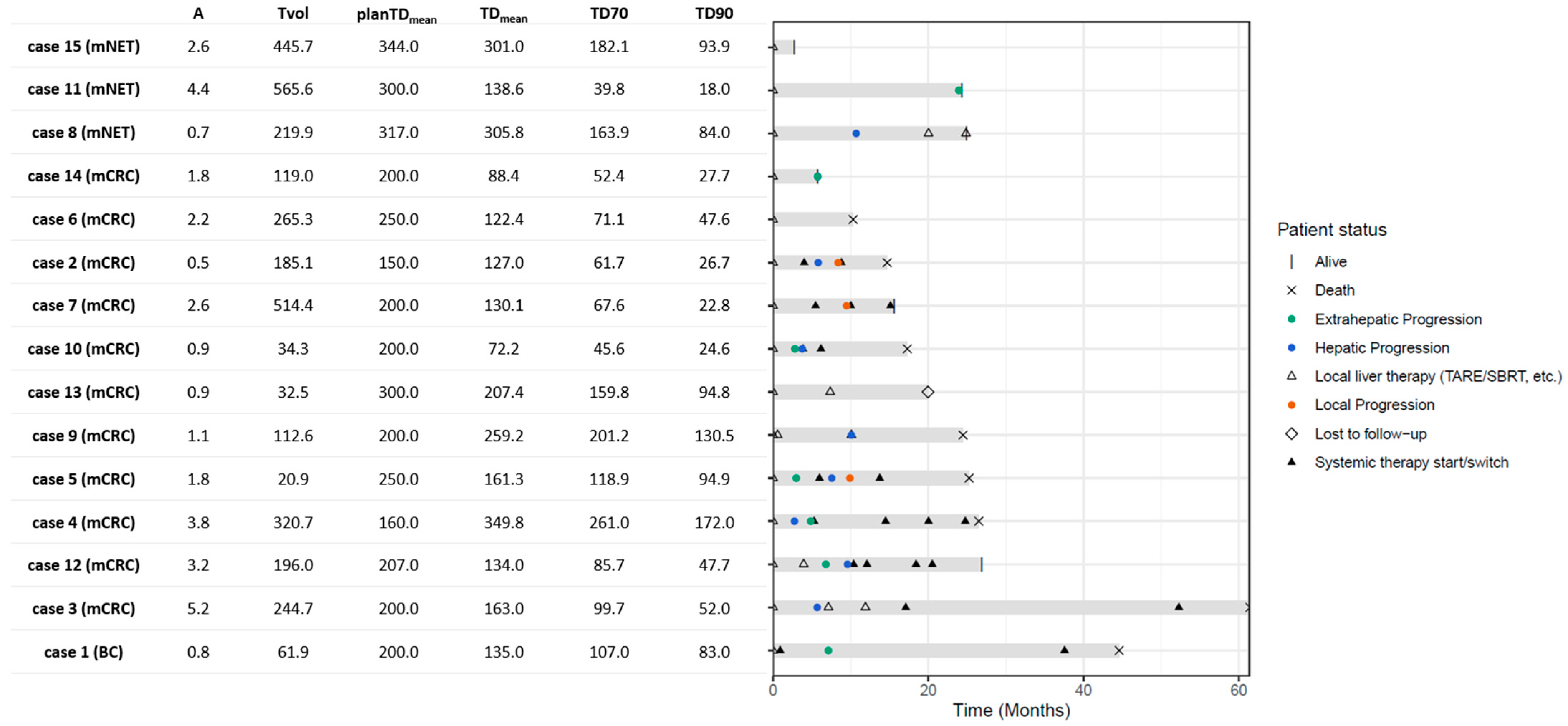 - Dimopoulos, P.M.; Sotirchos, V.S.; Dunne-Jaffe, C.; Petre, E.N.; Gonen, M.; Zhao, K.; Kirov, A.S.; Crane, C.; D’Angelica, M.; Connell, L.C.; et al. Voxel-Based Dosimetry Predicts Local Tumor Progression Post 90 Y Radiation Segmentectomy of Colorectal Liver Metastases. Clin. Nucl. Med. 2025, 50, 133–142. [Google Scholar] [CrossRef]