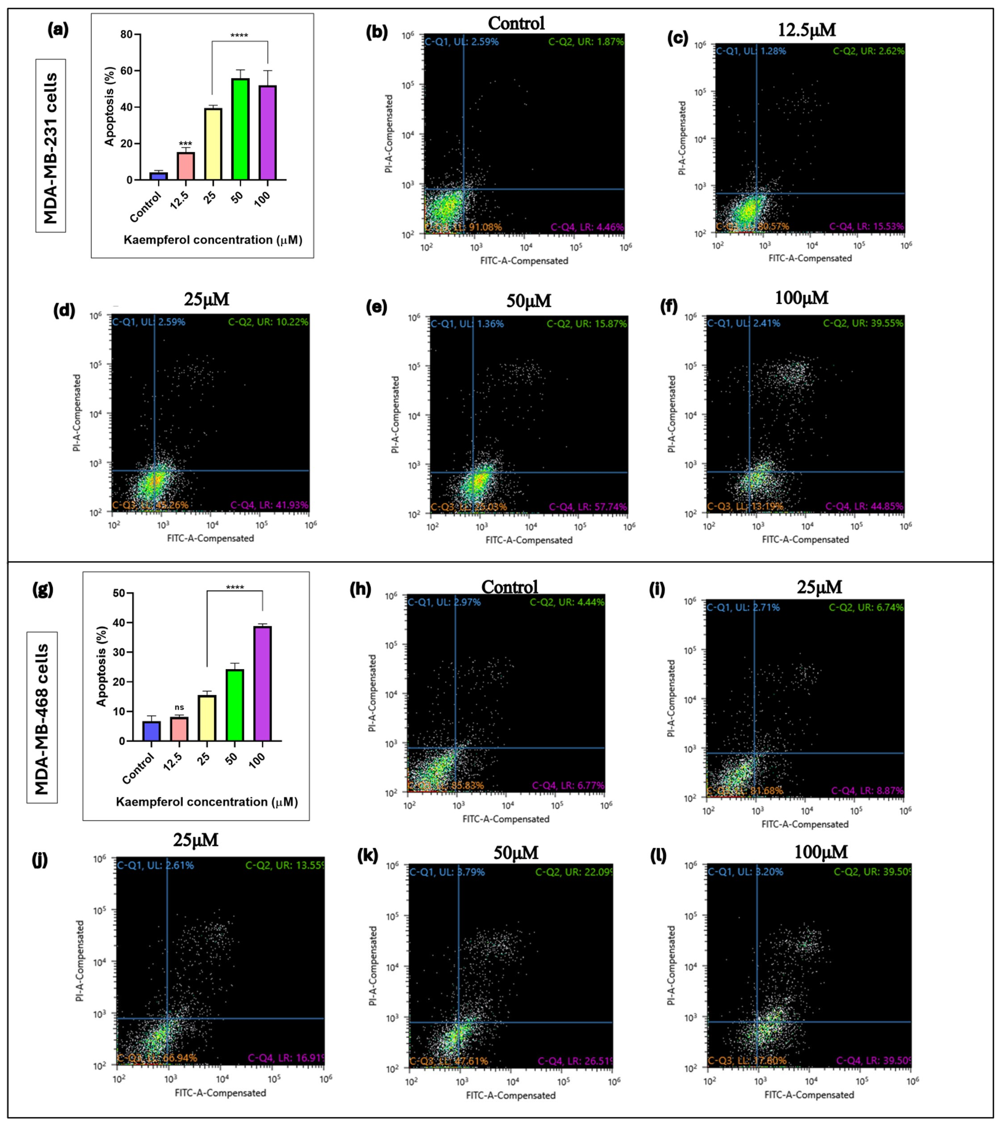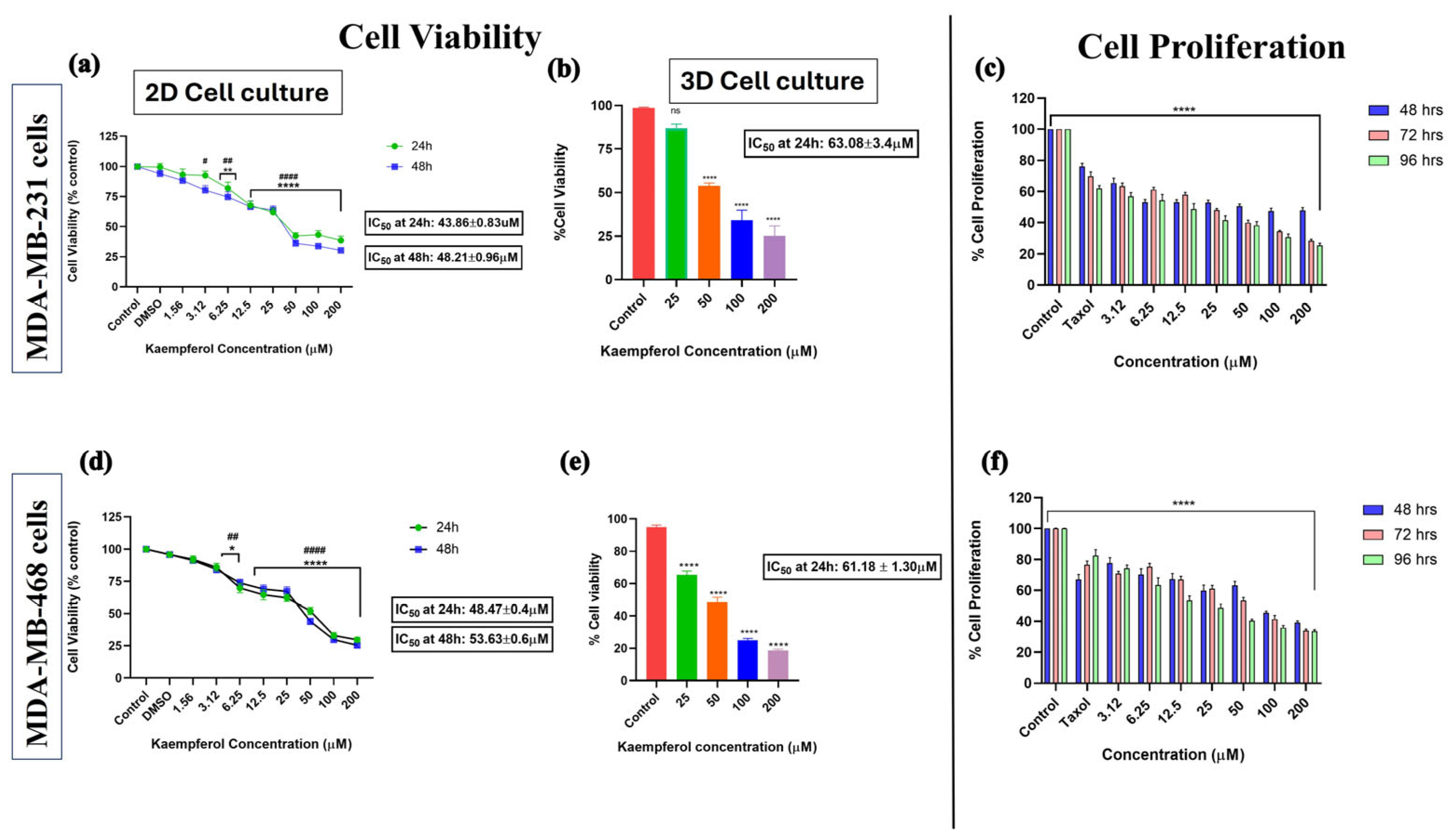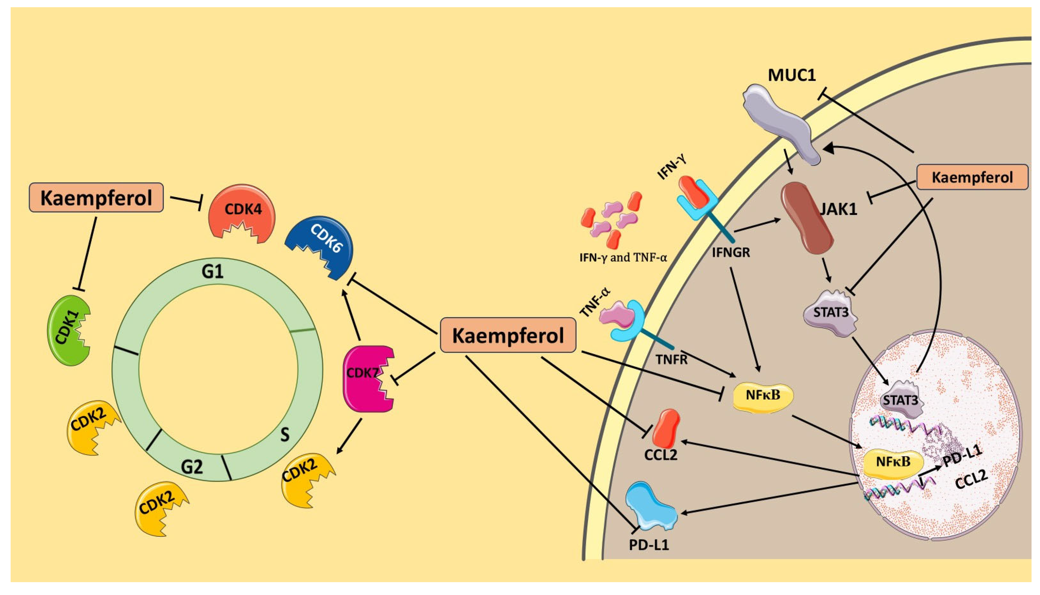 - Kaur, S.; Mendonca, P.; Soliman, K.F.A. The Anticancer Effects and Therapeutic Potential of Kaempferol in Triple-Negative Breast Cancer. Nutrients 2024, 16, 2392. [Google Scholar] [CrossRef] [PubMed]