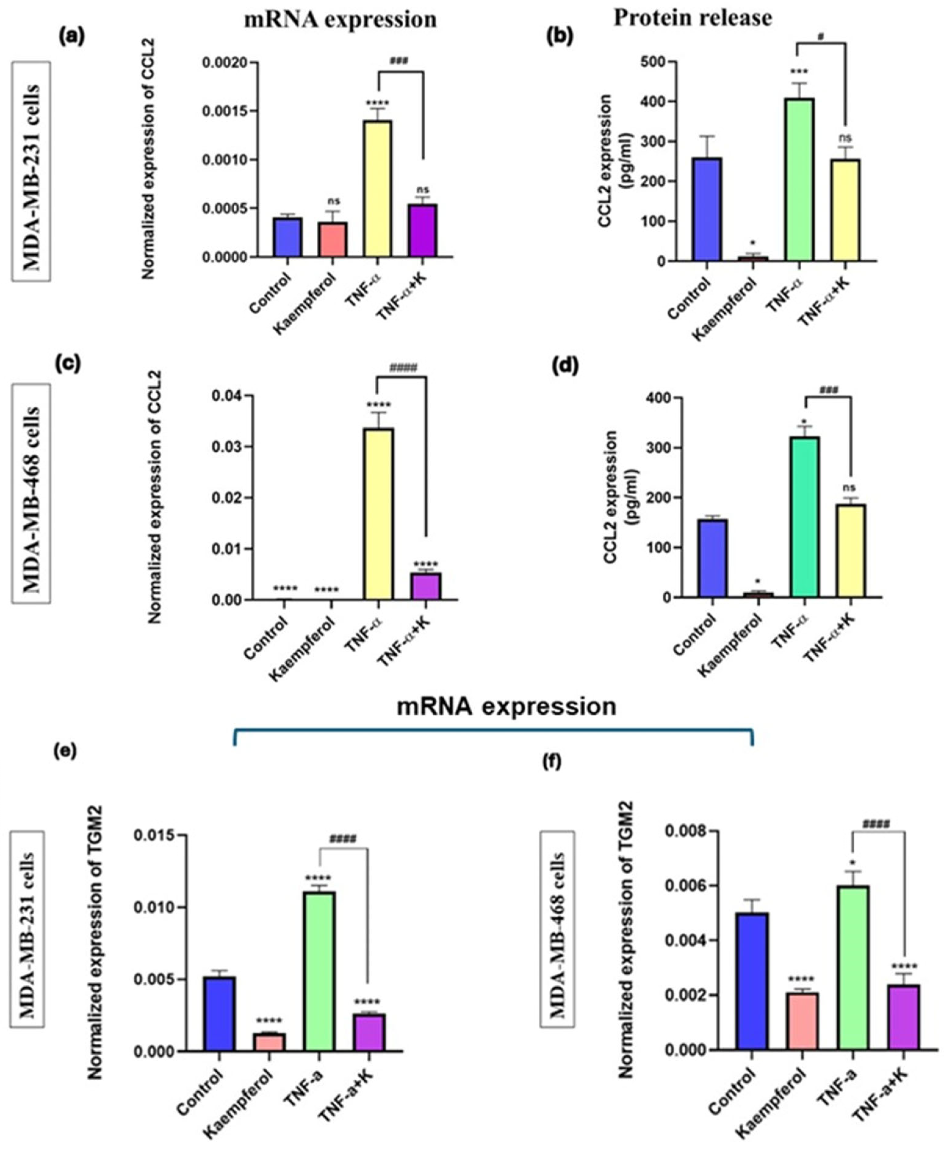 3.7. Kaempferol Reduced CCL2 and TGM2 mRNA Expression and Protein Release of CCL2