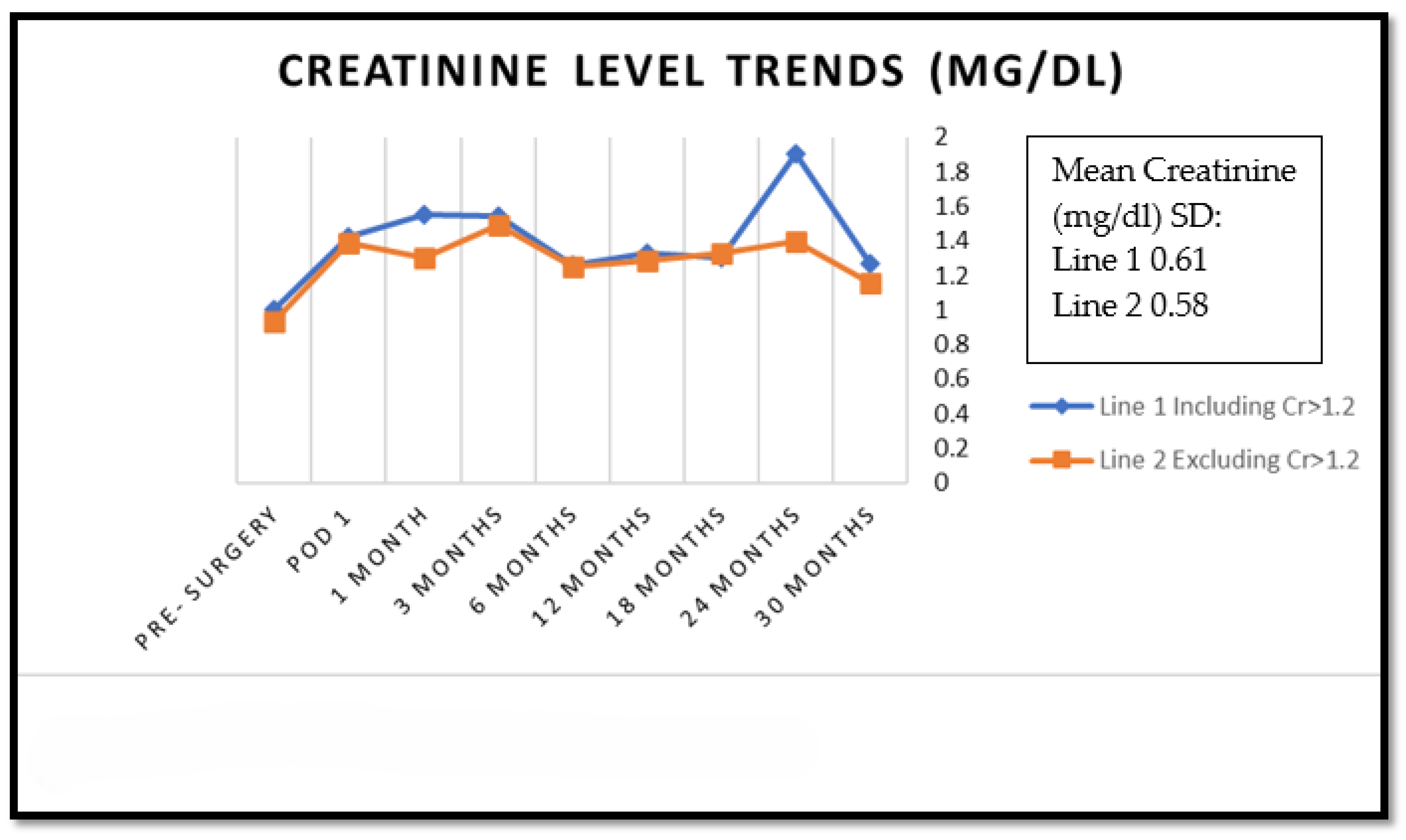 | Creatinine Level Trends Summary, Excluding Patients with Renal Failure | ||||||