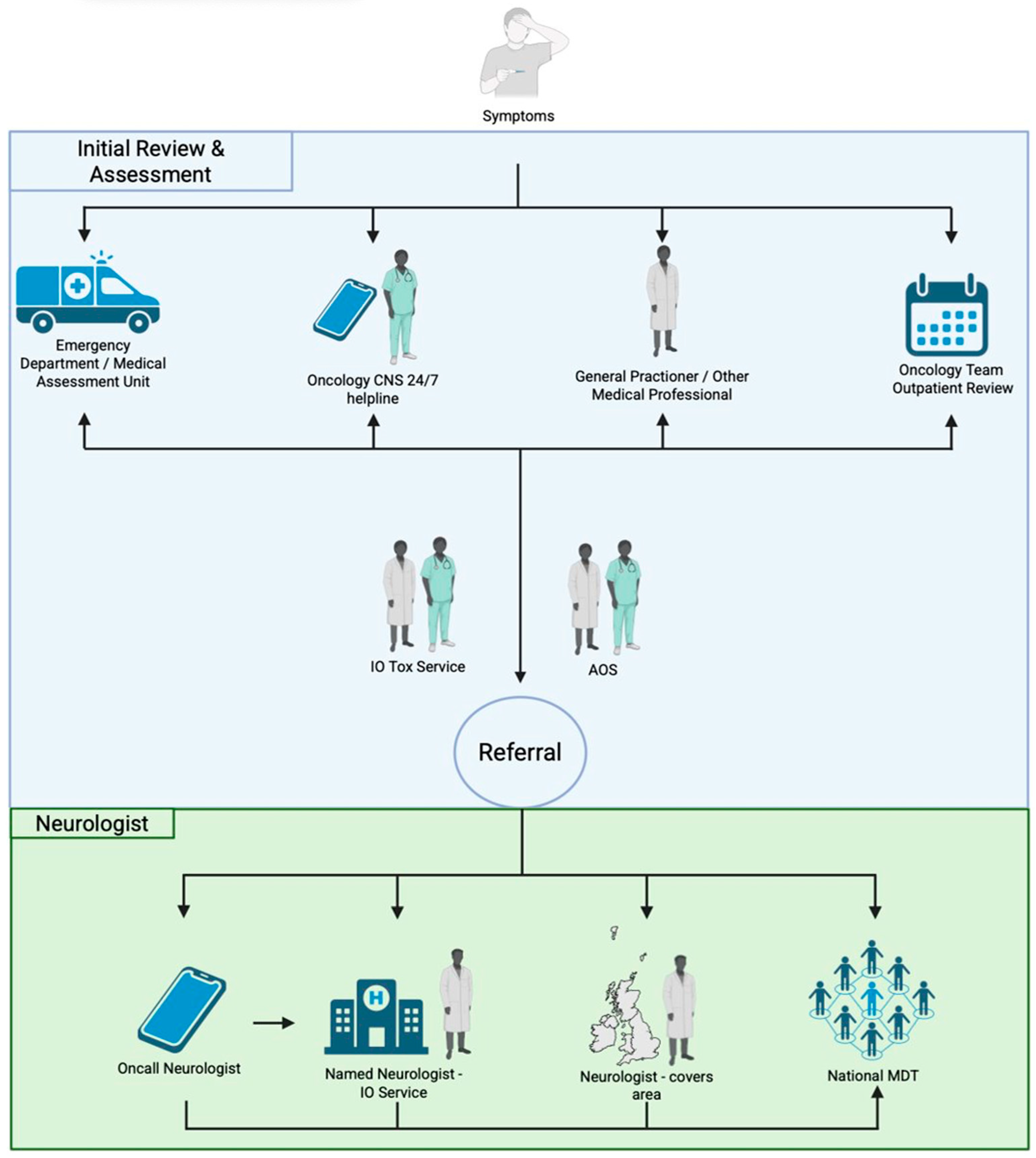 Although some independent centres have established immuno-oncology multi-specialty boards to co-ordinate care [8], the extent of specialist neurology involvement in N-irAE diagnosis and management has not been well described. This study focuses on specialist clinical neurology involvement in N-irAE diagnosis and management in a unified healthcare setting (National Health Service in England and Wales) to explore current access to and impact of neurology opinion in the care of this patient cohort.