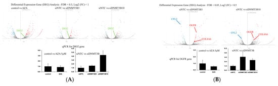 The following small interfering RNAs (siRNAs) targeting DNMT genes were obtained from Qiagen (Courtaboeuf, France) and stored at −20 °C until use: siDNMT3B-3 (Qiagen Cat. No. SI04346668), siDNMT3B-10 (Qiagen Cat. No. SI04292673), siDNMT3A-11 (Qiagen Cat. No. SI04197437), siDNMT3A-15 (Qiagen Cat. No. SI04194654), siDNMT1-1 (Qiagen Cat. No. SI02654418), and siDNMT1-6 (Qiagen Cat. No. SI02654425).