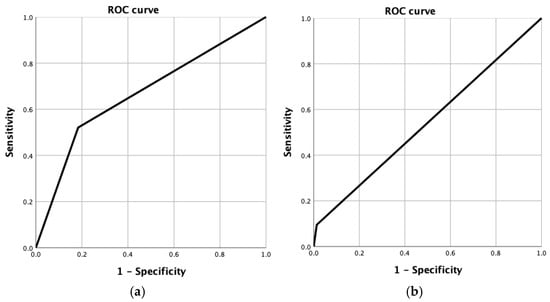 The ROC curve analysis demonstrated an area under the curve (AUC) of 0.669 for predicting a good response, indicating a modest discriminatory ability of MRI in identifying patients with favorable tumor regression. Conversely, the AUC for predicting a complete pathological response was 0.541, reflecting poor accuracy and limited predictive value of MRI for complete response detection in this cohort (Figure 3).