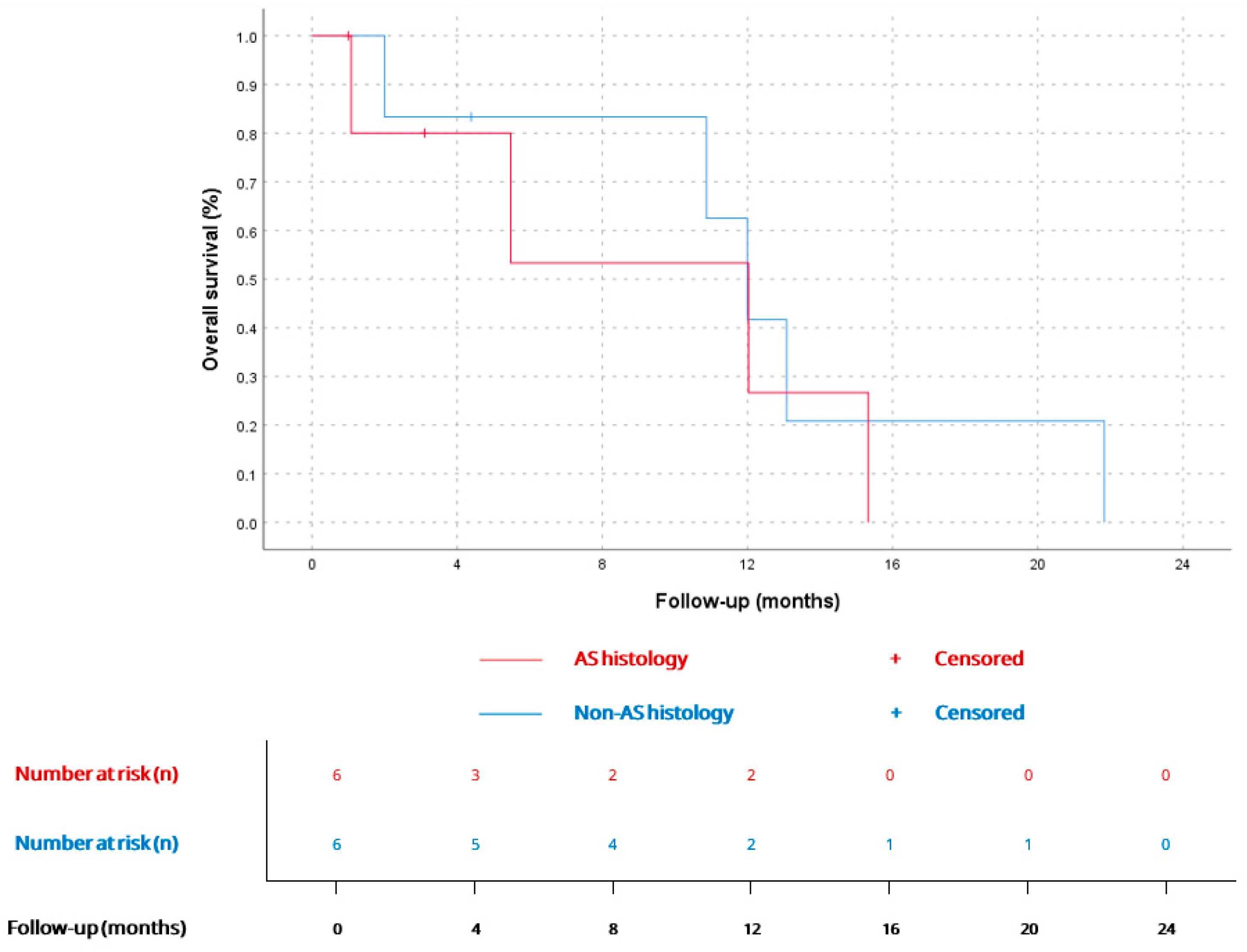 | OS for non-angiosarcoma histologies | 6 | 12 | 9.6–14.3 |