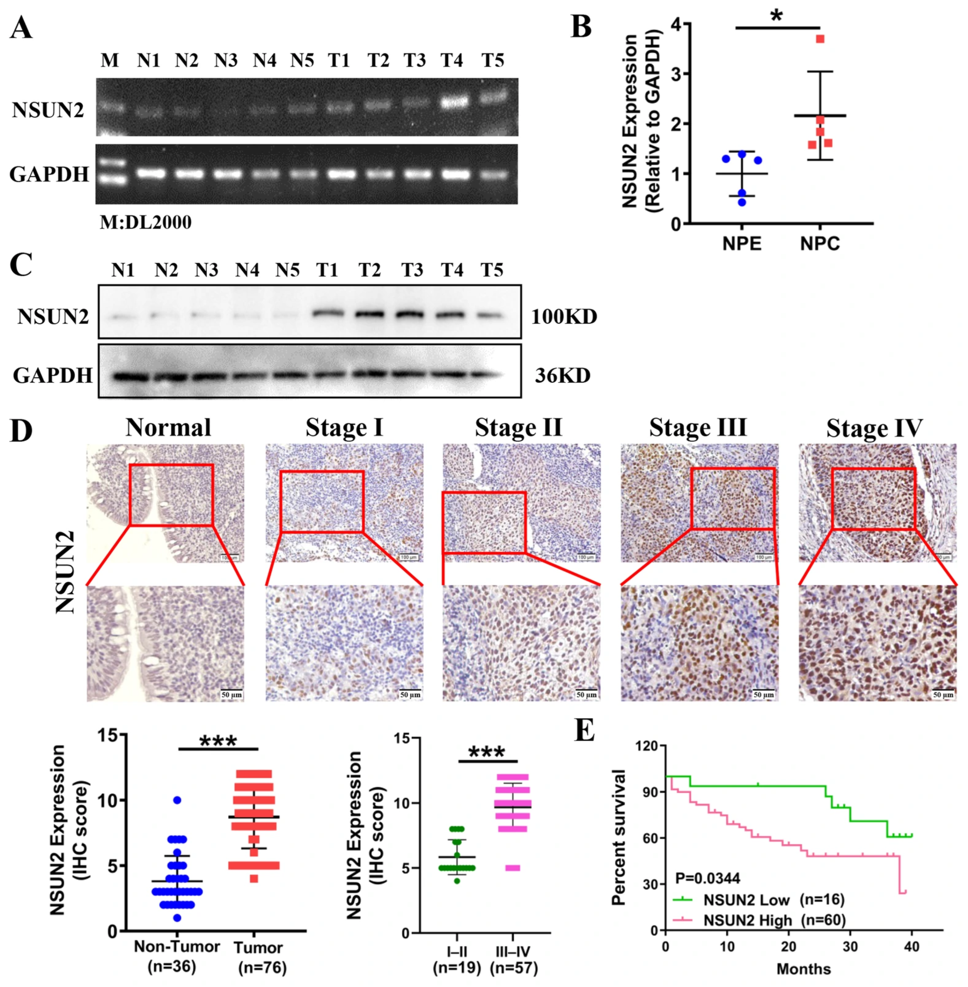 3.1. High NSUN2 Expression in NPC and Its Association with Poor Prognosis