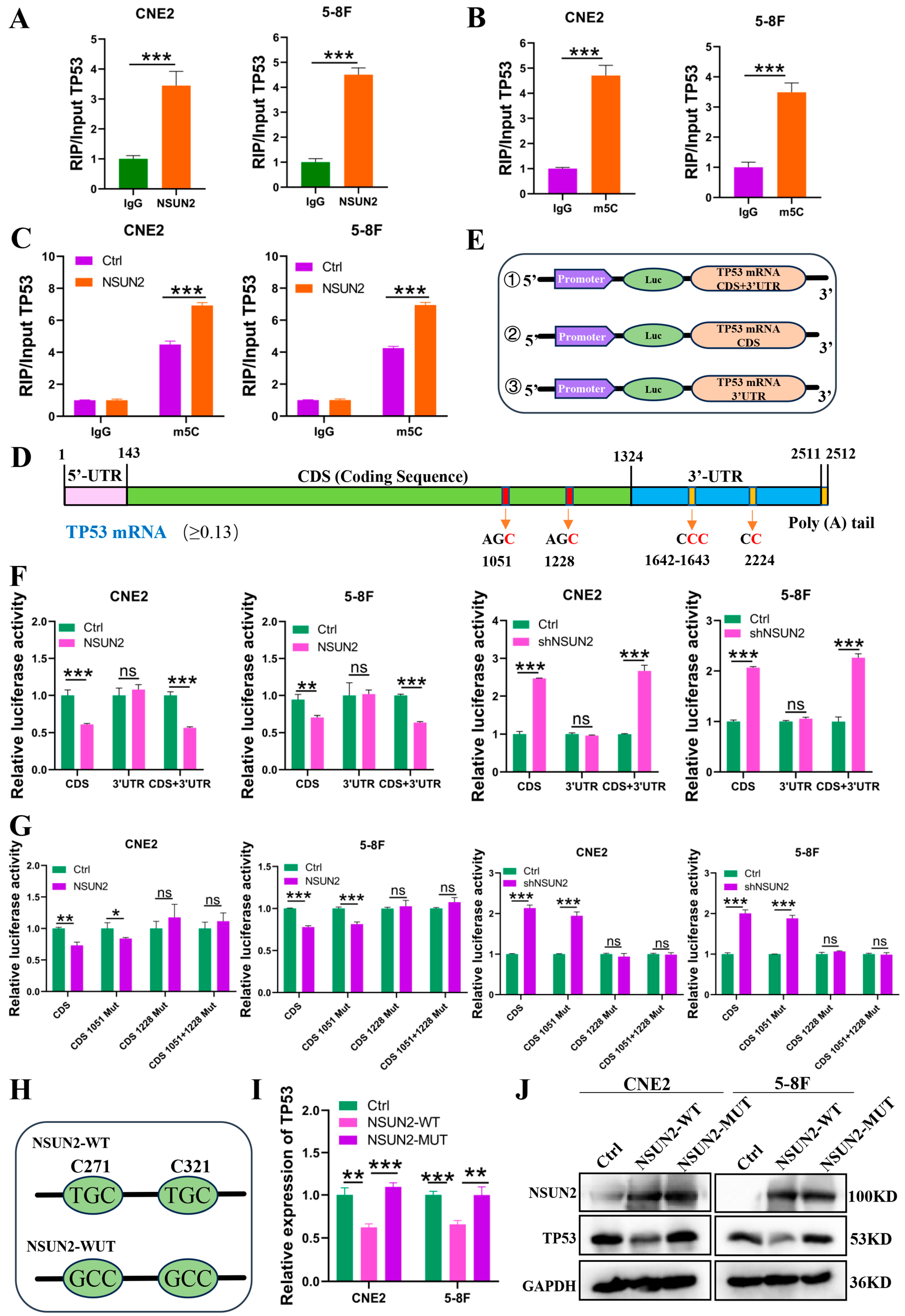 Zheng, L.; Wei, J.; Li, X.; Li, M.; Xue, C.; Chen, S.; Wei, Q.; Fan, S.; Xiong, W.; Zhou, M.; et al. NSUN2 Negatively Regulates TP53 mRNA Stability to Promote the Malignant Progression of Nasopharyngeal Carcinoma. Cancers 2025, 17, 3950. https://doi.org/10.3390/cancers17243950