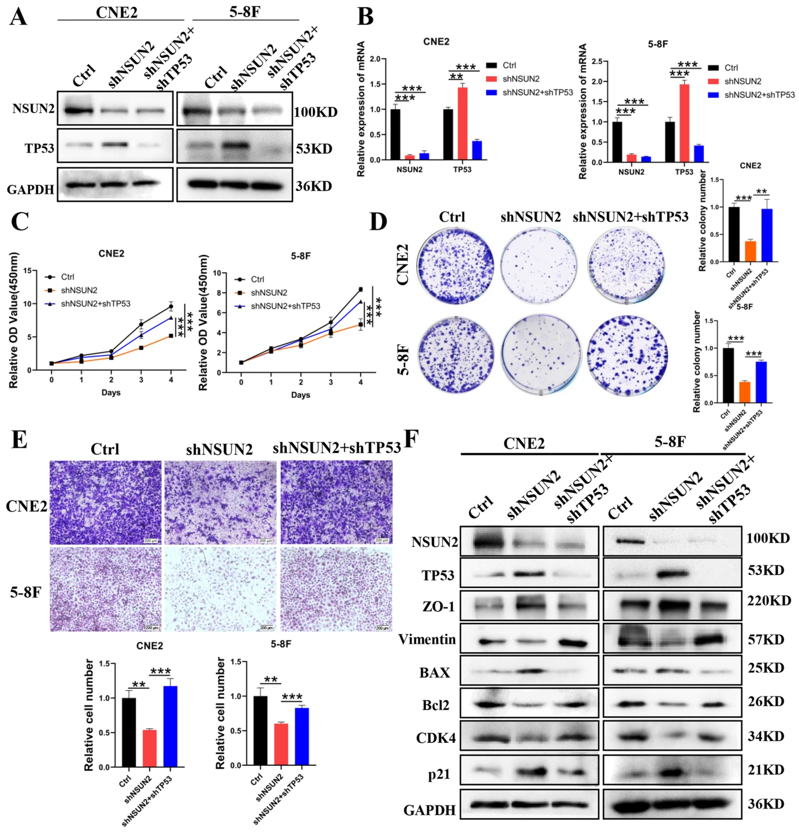 3.5. TP53 Knockdown Reverses the Suppressive Effects of NSUN2 Knockdown on NPC Cells
