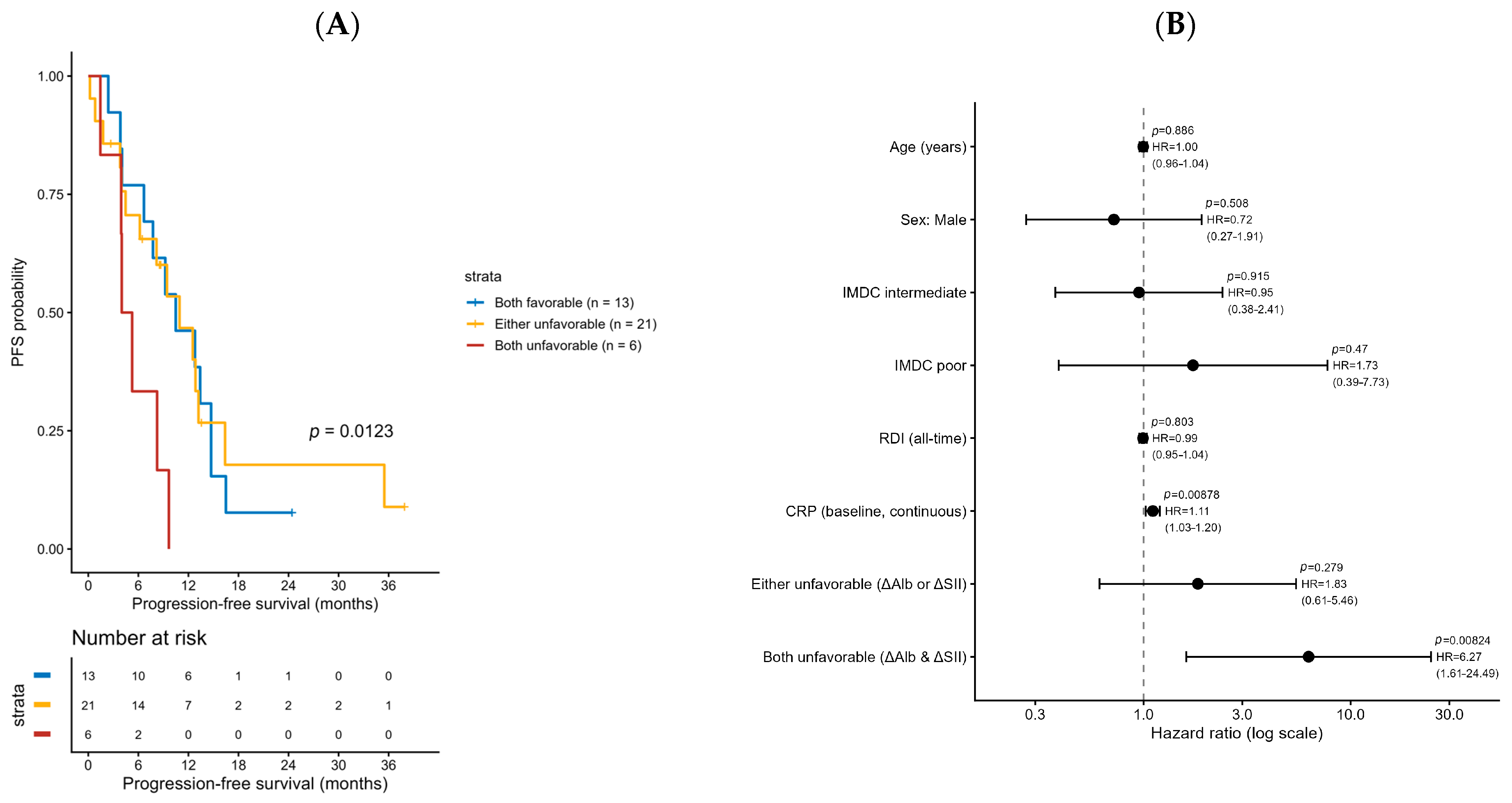 3.3. PFS According to the ΔAlb + ΔSII Composite Score