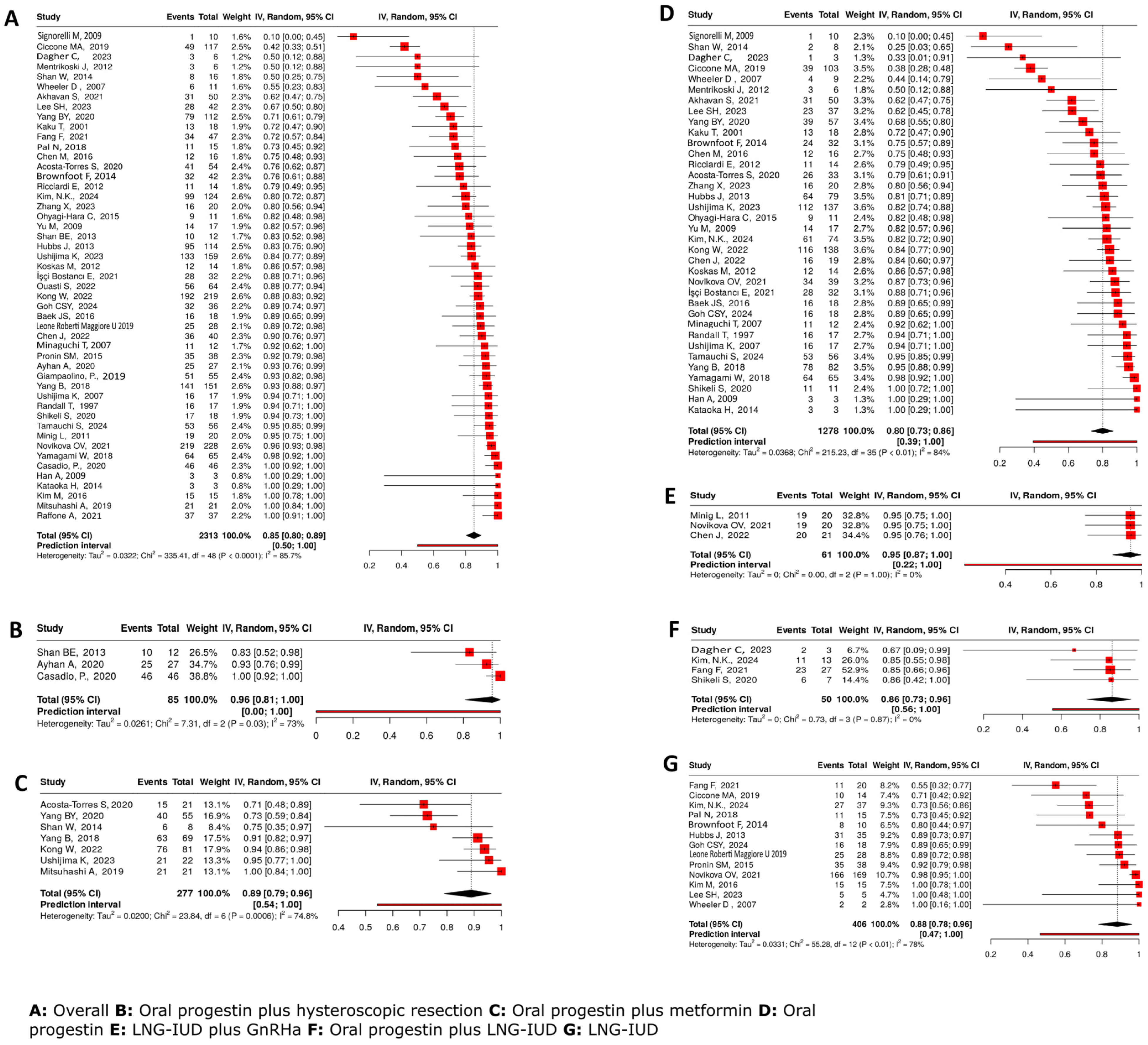 Sebok, P.; Keszthelyi, M.; Vida, B.; Lőczi, L.; Sebők, B.; Merkely, P.; Ács, N.; Keszthelyi, A.; Várbíró, S.; Lintner, B.; et al. Oncologic and Reproductive Outcomes After Fertility-Sparing Treatments for Endometrial Hyperplasia with Atypia: A Systematic Review and Meta-Analysis. Cancers 2025, 17, 3966. https://doi.org/10.3390/cancers17243966