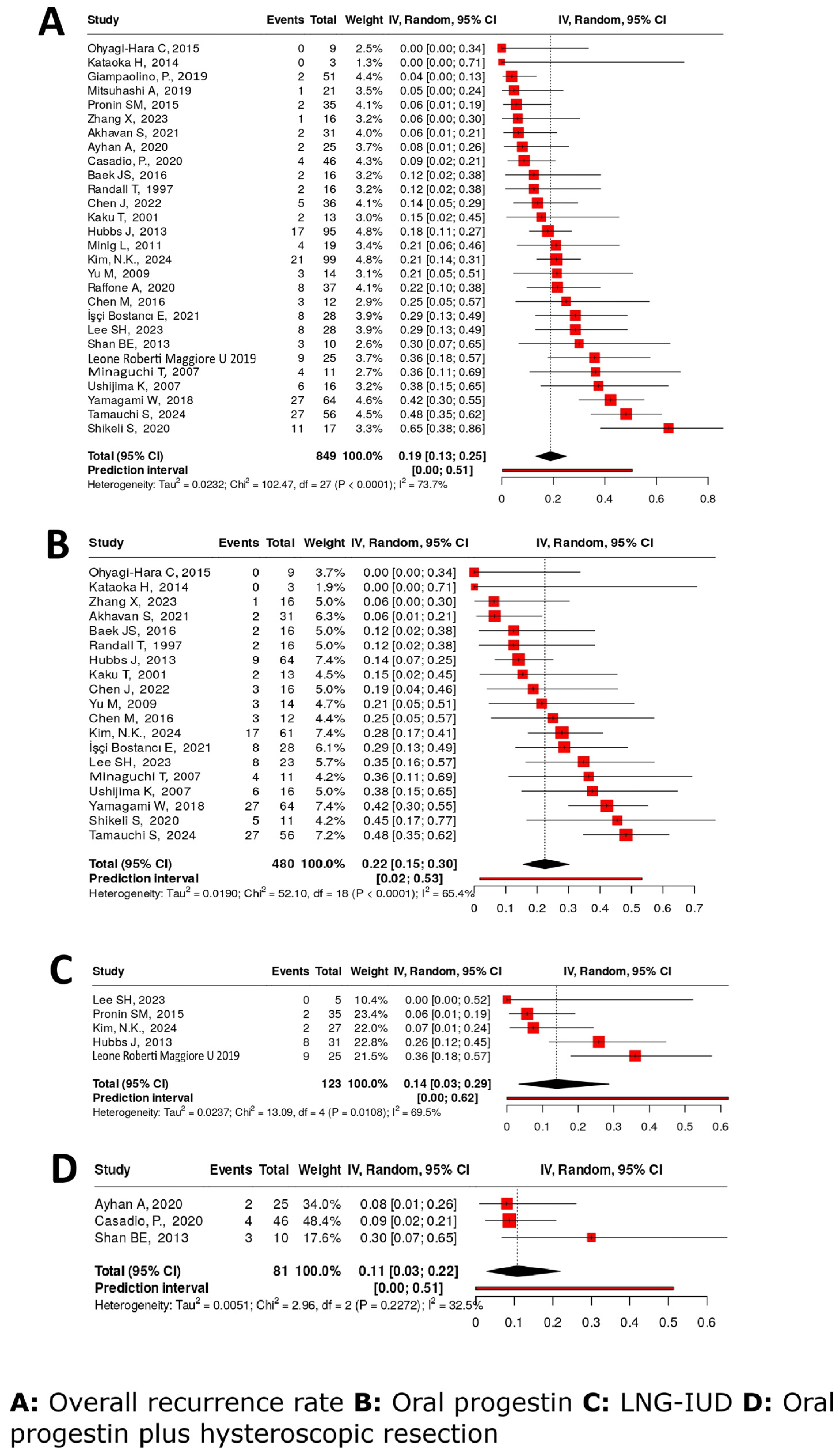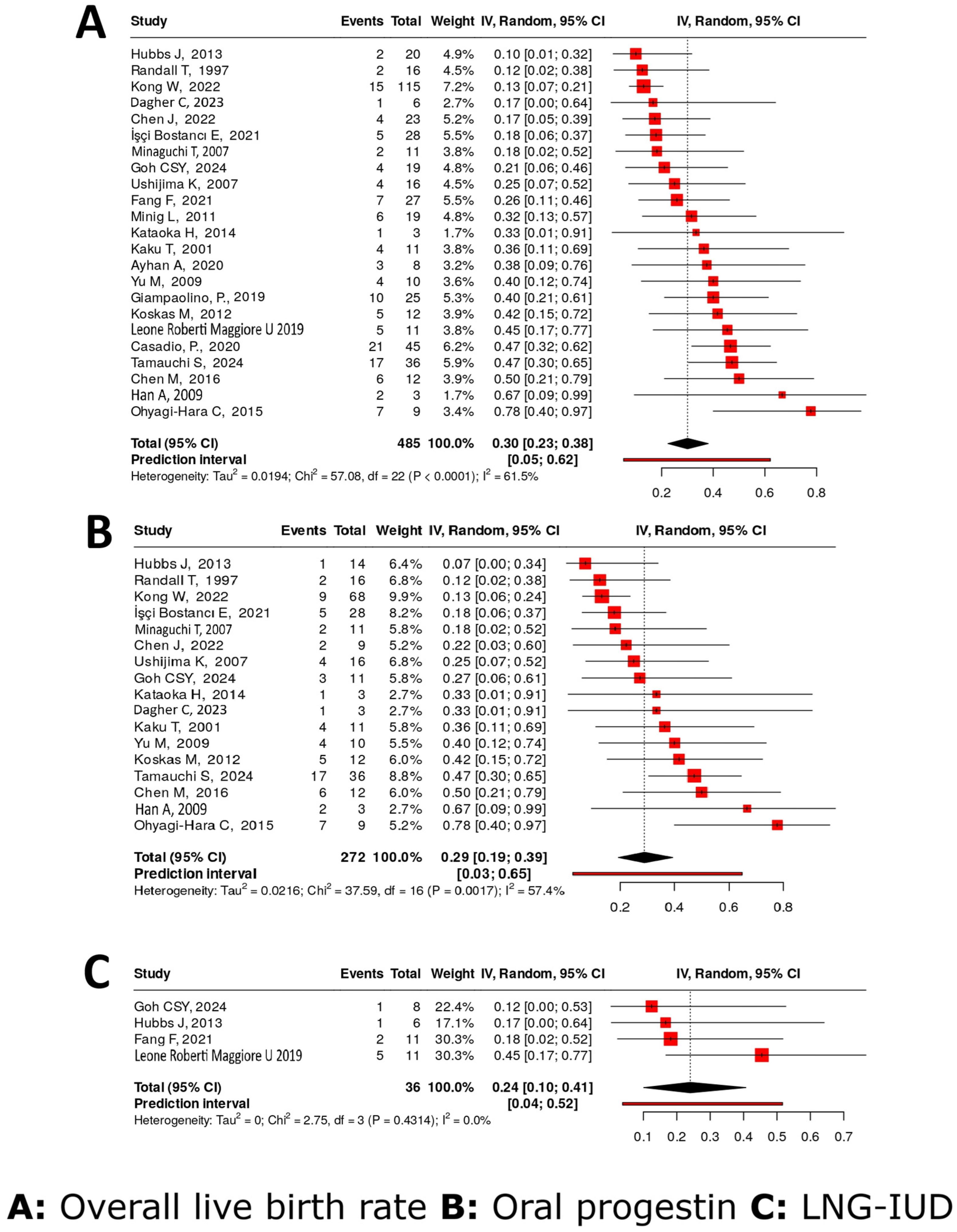 | Pronin SM 2015 [22] | 38 | 33 (28–42) MD | N/A | IUD | LNG | 35/38 | 2/35 | N/A | N/A | 0/38 | 3/38 |