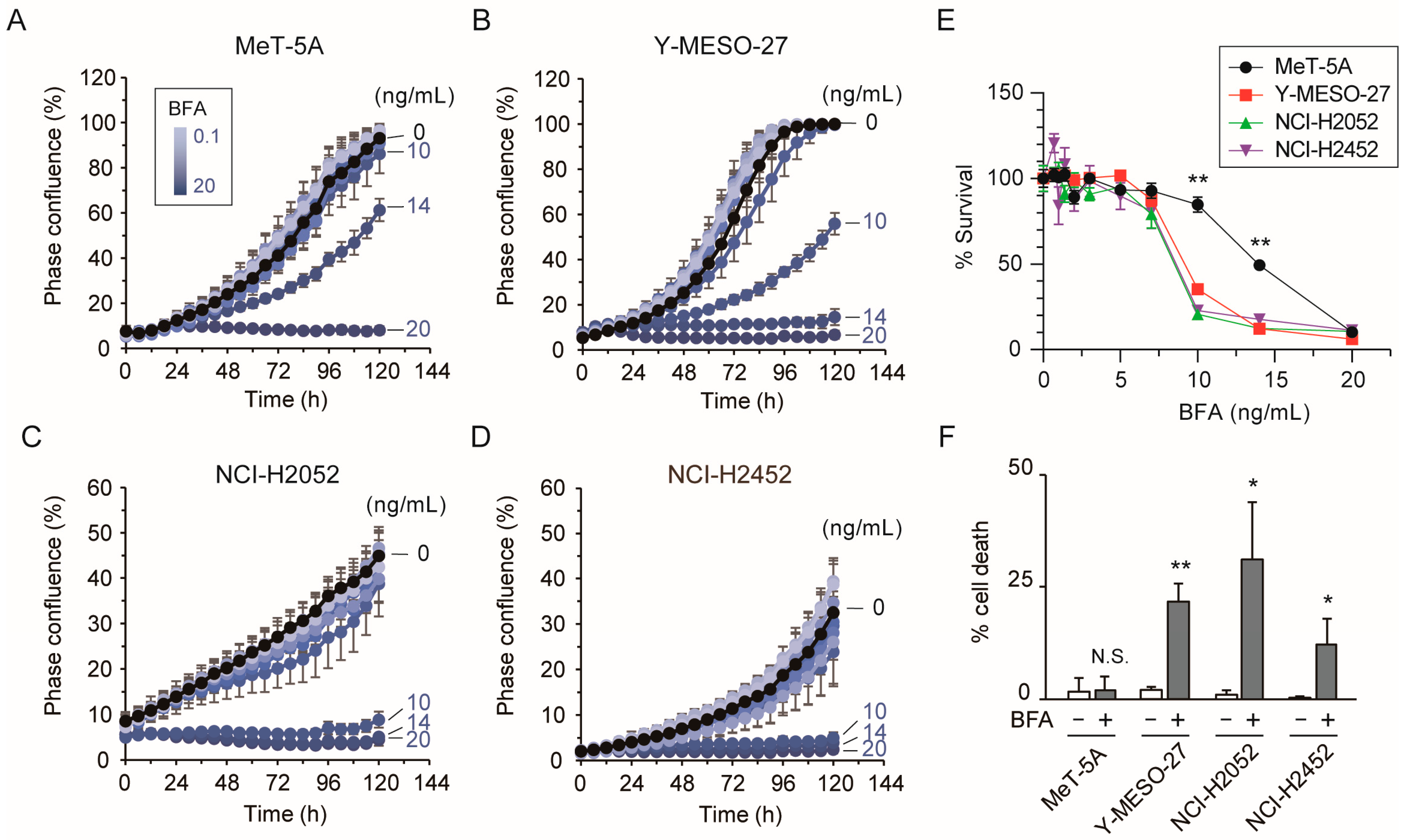 3.2. Low-Dose Brefeldin A Induces Cell Death in Mesothelioma Cells