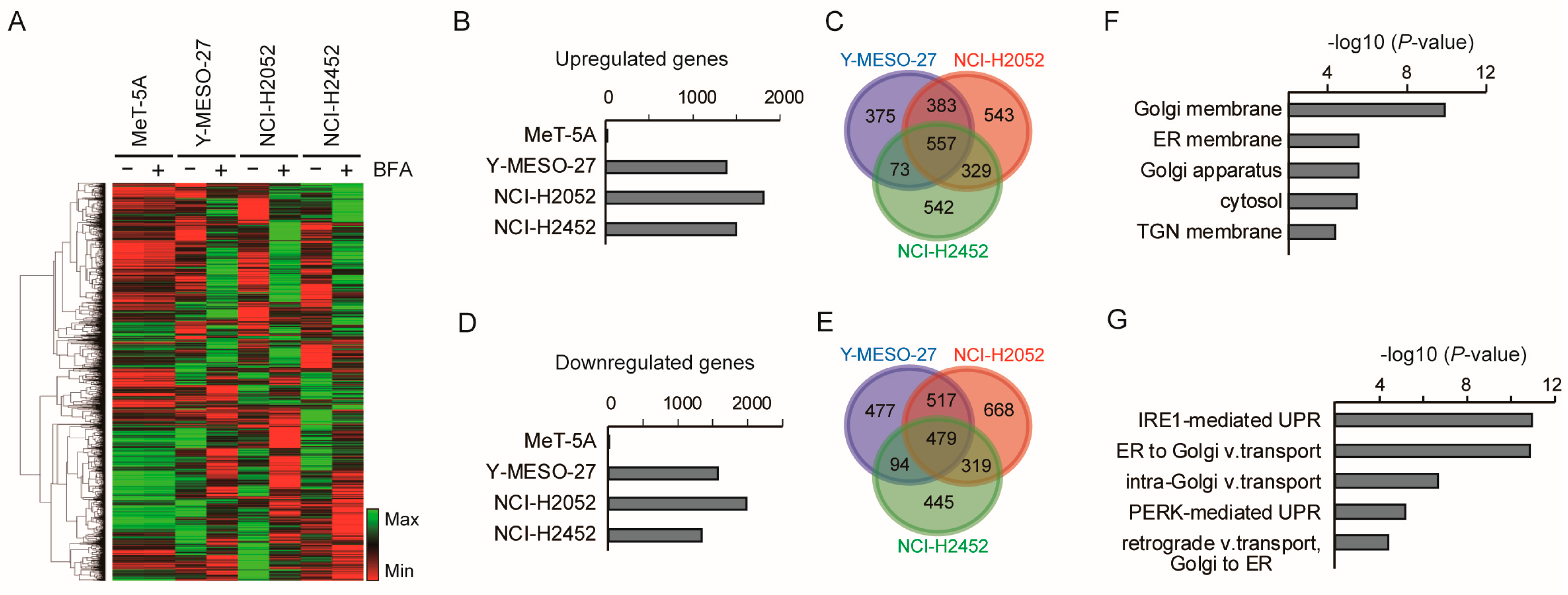 3.3. Low-Dose Brefeldin A Selectively Triggers Stress-Related Transcriptional Responses in Mesothelioma Cells