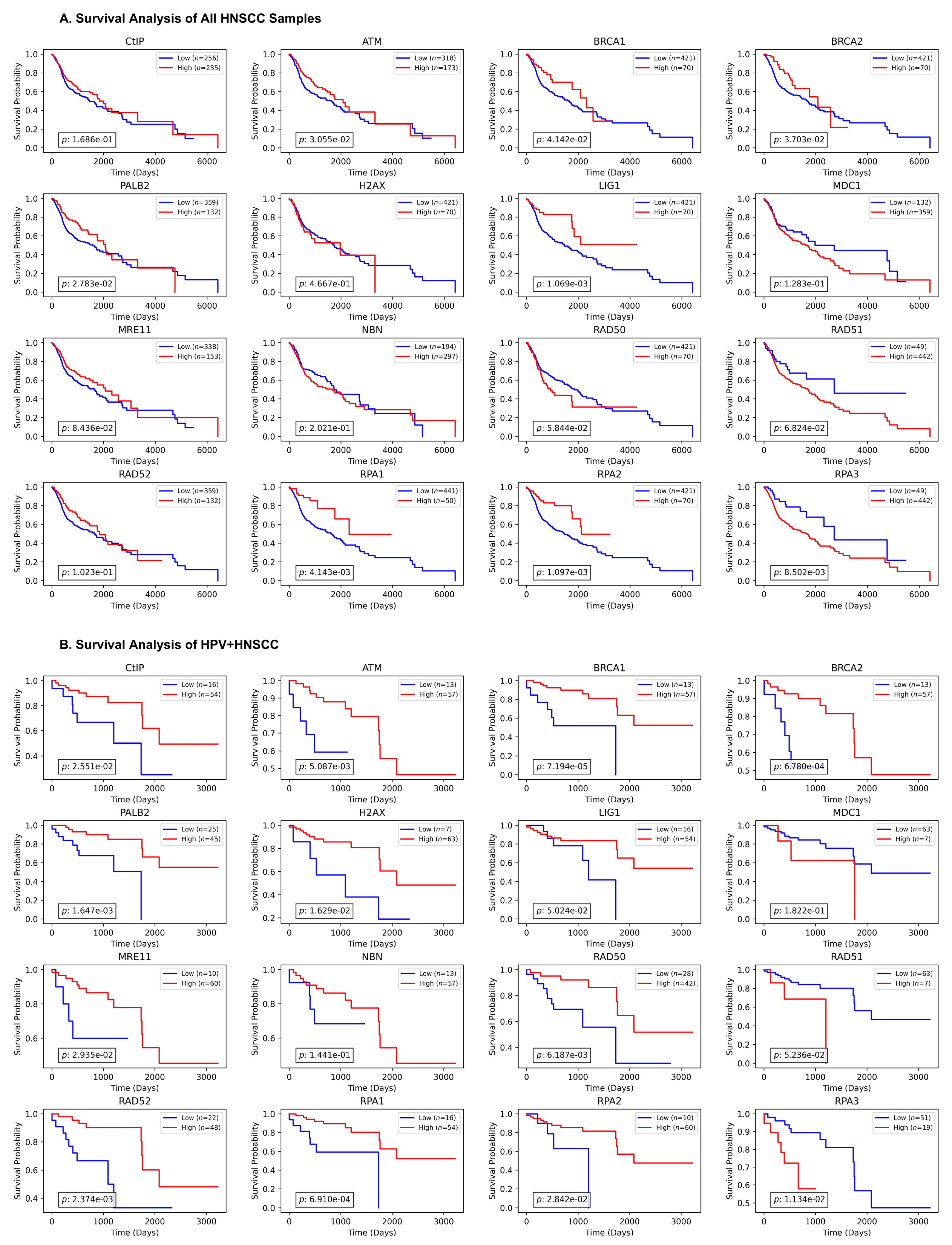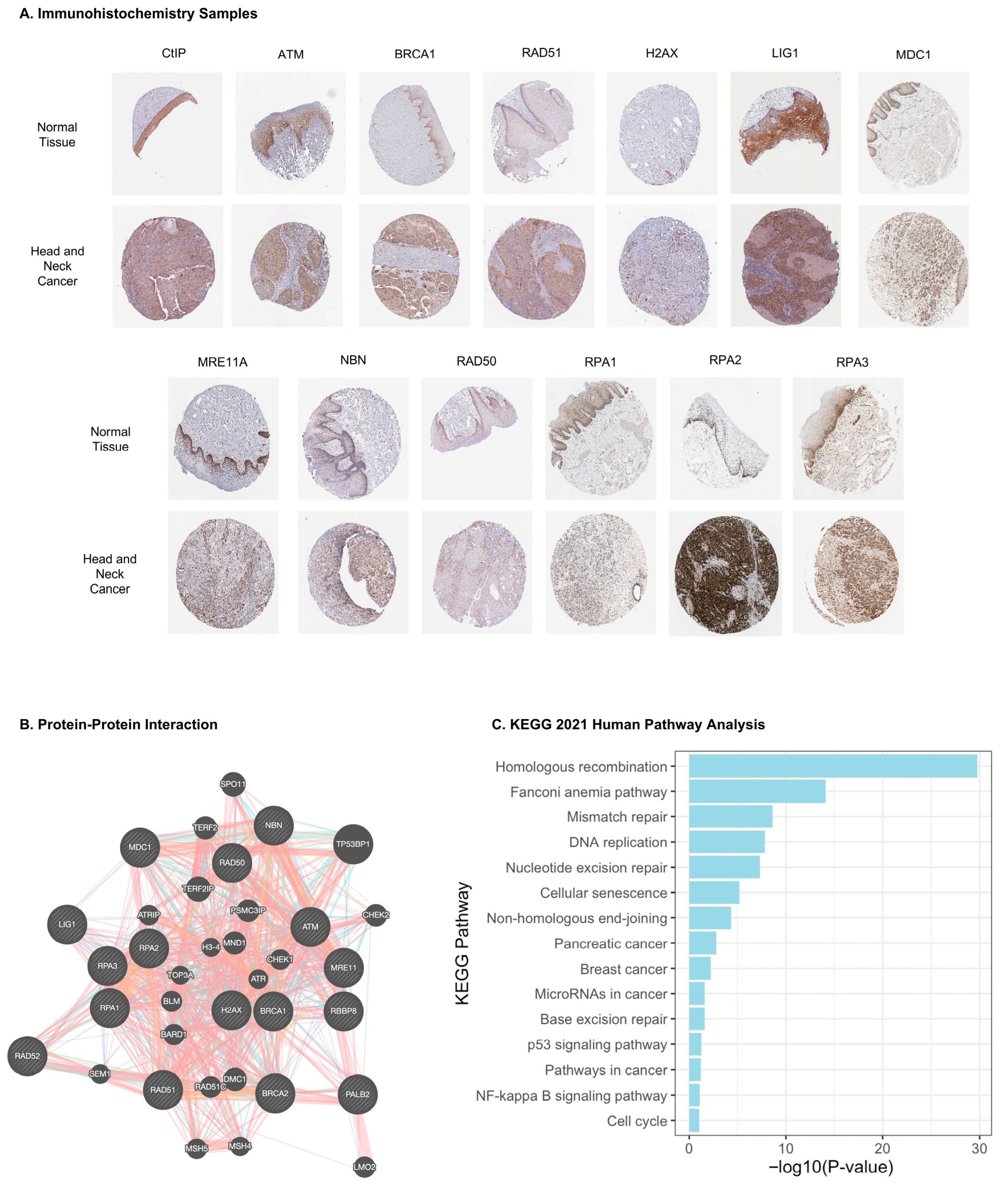 3.3. The Prognostic Value of HR Proteins Expression for HNC Patients