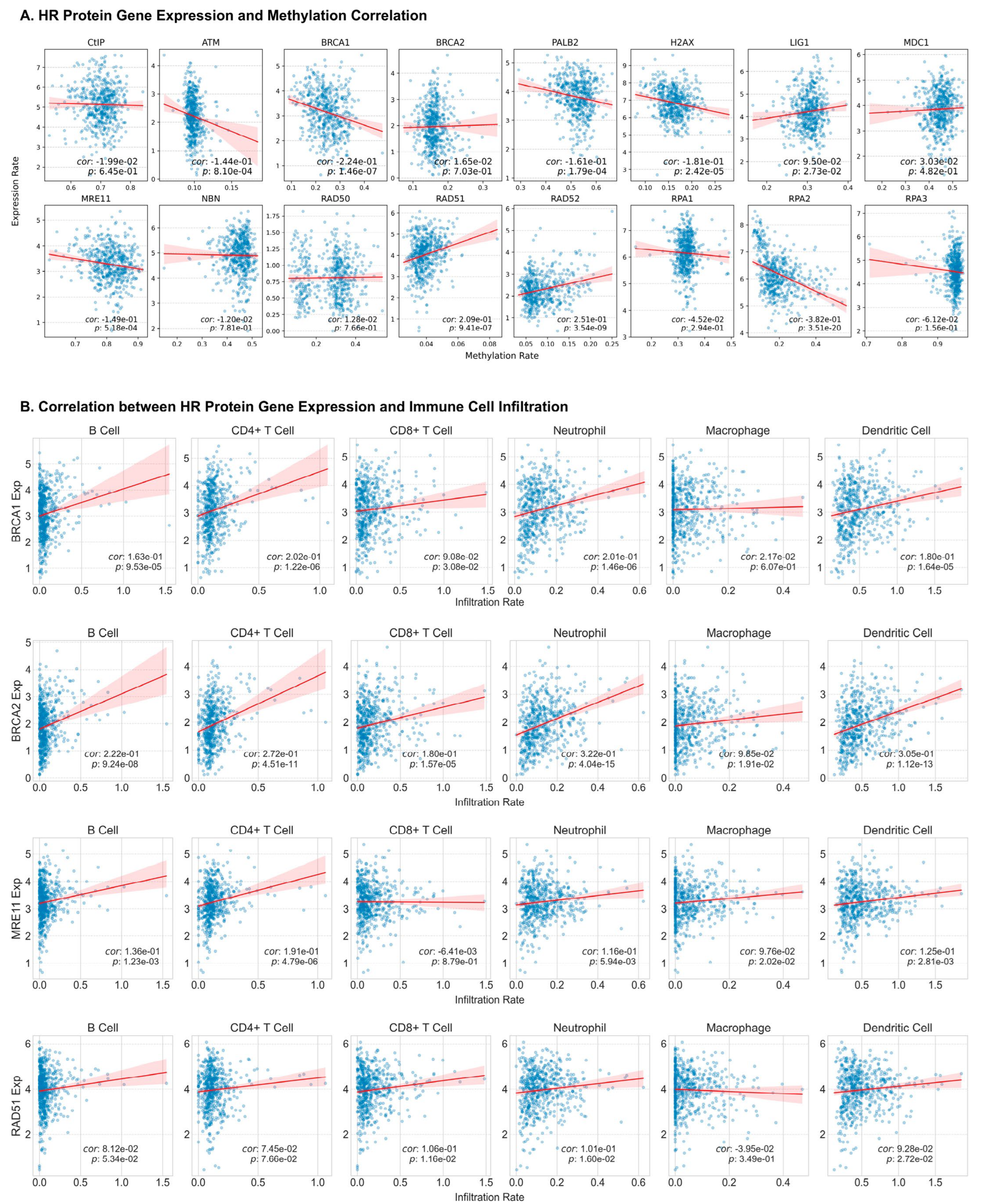 3.4. Correlation Between HR Proteins Expression and DNA Methylation