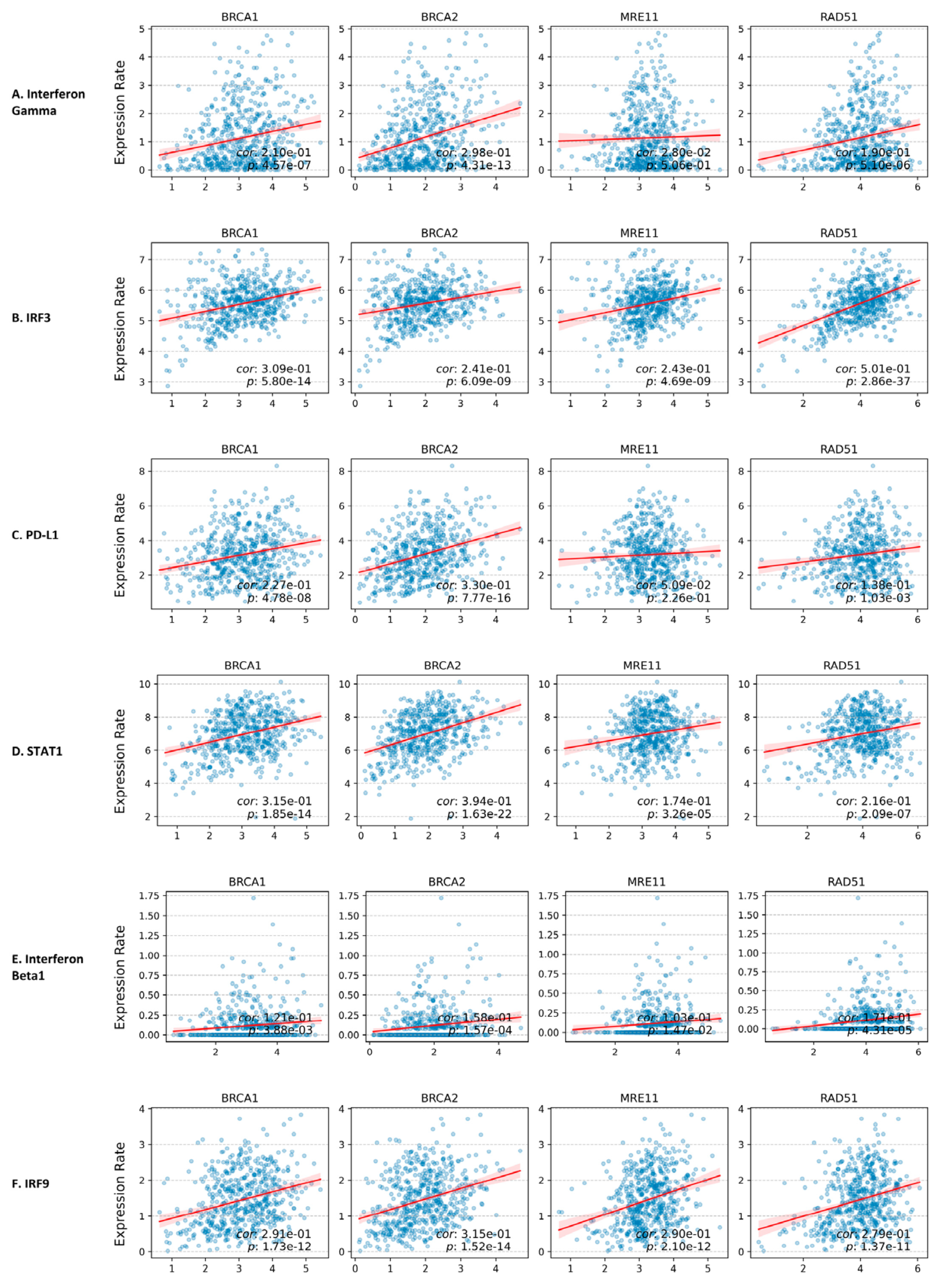 3.6. Correlation Between HR Proteins Gene Expression and cGAS/STING Pathway Downstream Protein Gene Expression