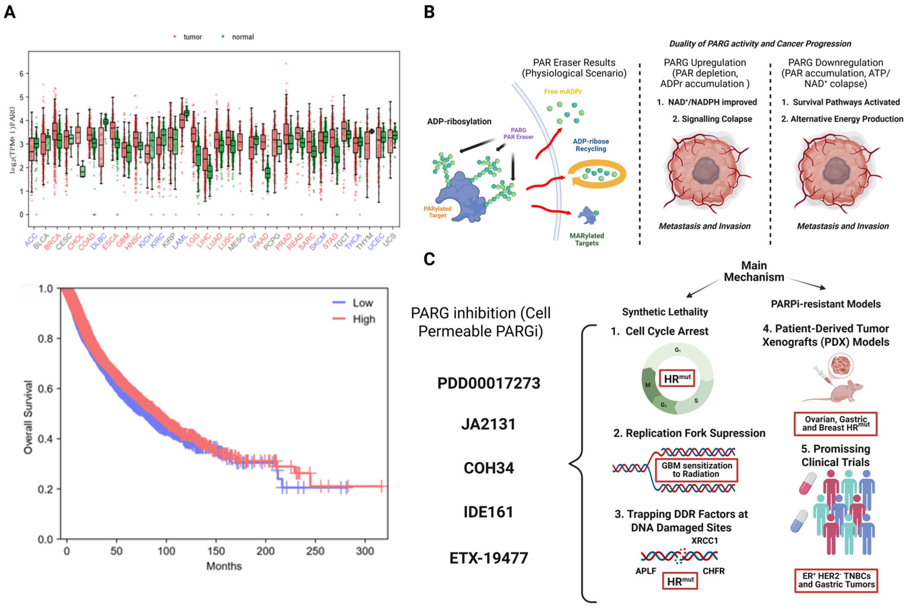 | GPI-16551/GPI-18214 IC50: ≥2µM | Blocking the pADPr hydrolysis by PARG | Low (Toxicity) | High Doses in vitro Low Cell Permeability | Preclinical |