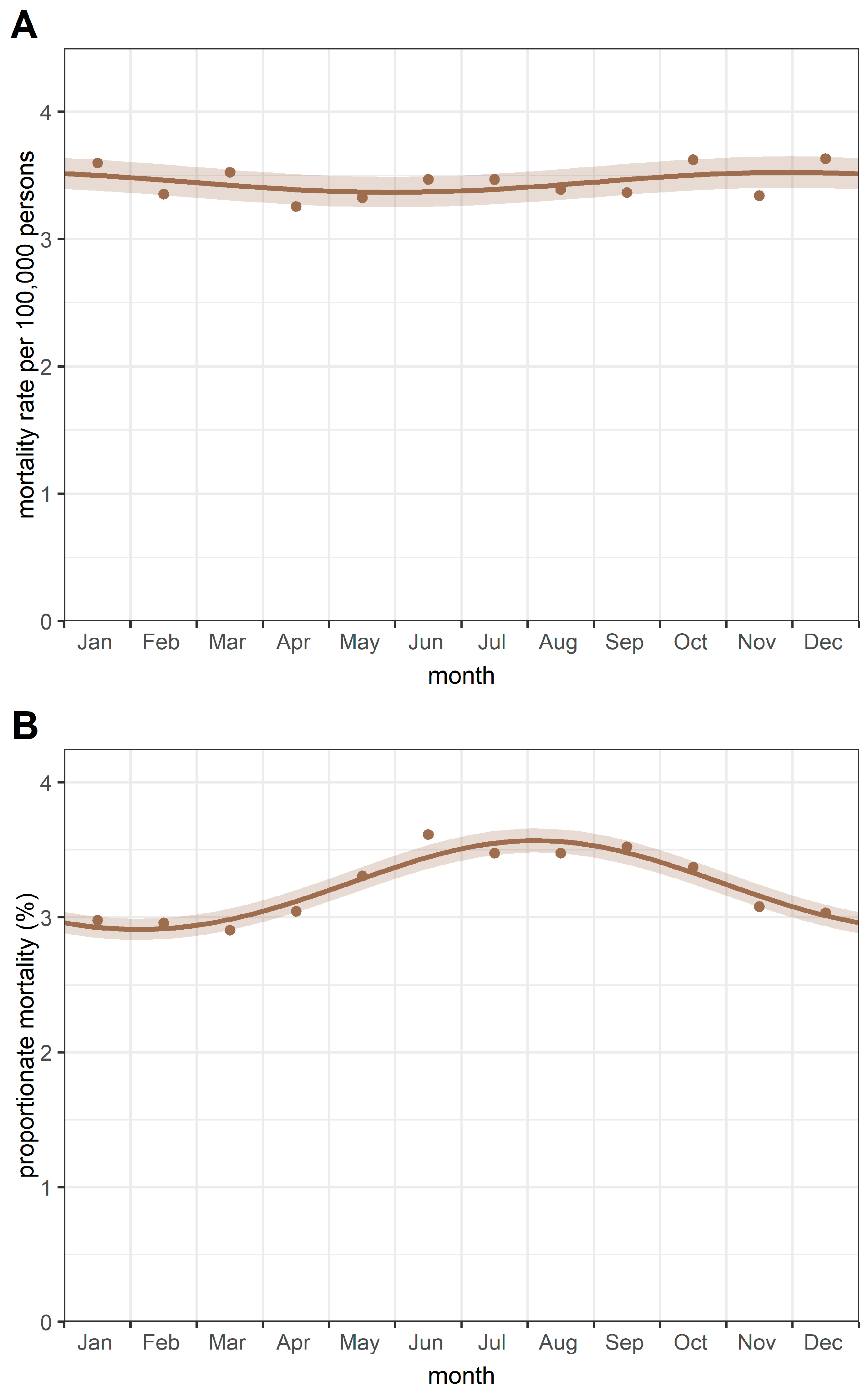 - Virág, K.; Nyári, T.A. Seasonal variation of cancer mortality in Hungary between 1984 and 2013. Scand. J. Public Health 2019, 47, 492–496. [Google Scholar] [CrossRef] [PubMed]