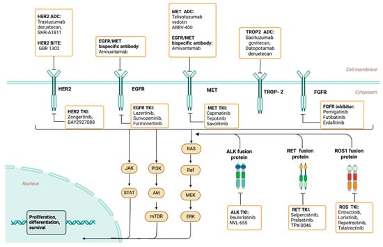 Summary of emerging targeted therapies in NSCLC. Created using biorender.com.