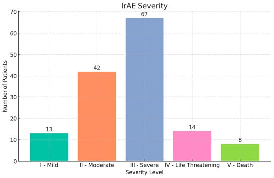 irAE severity by Common Terminology Criteria for Adverse Events (CTCAE) grade.