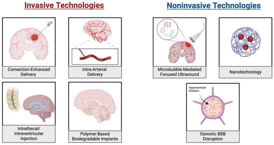 Focused ultrasound (FUS) is an emerging technology used for the treatment of adult and pediatric brain tumors, due to its ability to induce diverse biological effects. These include thermal or mechanical tissue ablation, immunomodulation, radiosensitization and BBB disruption [137]. The therapy relies on using IV-administered microbubbles, which generate intravascular mechanical forces in sonicated regions, reflecting transmitted energy onto endothelial cells of local vasculature through oscillation, causing stable cavitation. This allows modulation of the BBB and induces transient separation of tight junctions, facilitating increased drug delivery [138,139,140]. These microbubbles and endothelial cells interactions also result in downregulation of efflux transportation and sonoporation, all of which contribute to enhanced drug delivery into the brain and improved accumulation of targeted agents in the sonicated region [137,141]. This anatomical disruption is transient, and the BBB permeability is restored in 6–24 h, making it an even more appropriate and attractive therapeutic option [141].