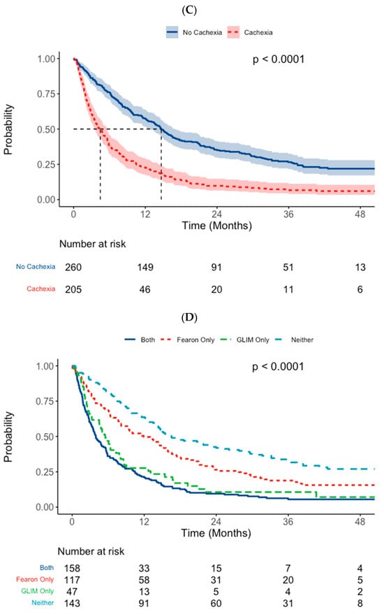 3.3. Effect of Cachexia Classifiers on Overall Survival