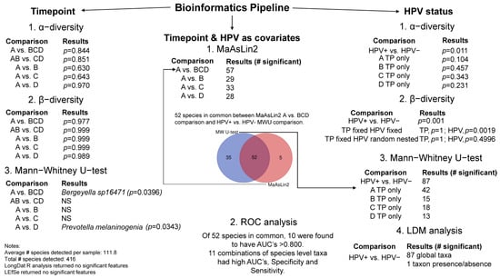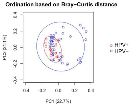 - Zhang, Y.; D’Souza, G.; Fakhry, C.; Bigelow, E.O.; Usyk, M.; Burk, R.D.; Zhao, N. Oral Human Papillomavirus Associated With Differences in Oral Microbiota Beta Diversity and Microbiota Abundance. J. Infect. Dis. 2022, 226, 1098–1108. [Google Scholar] [CrossRef]